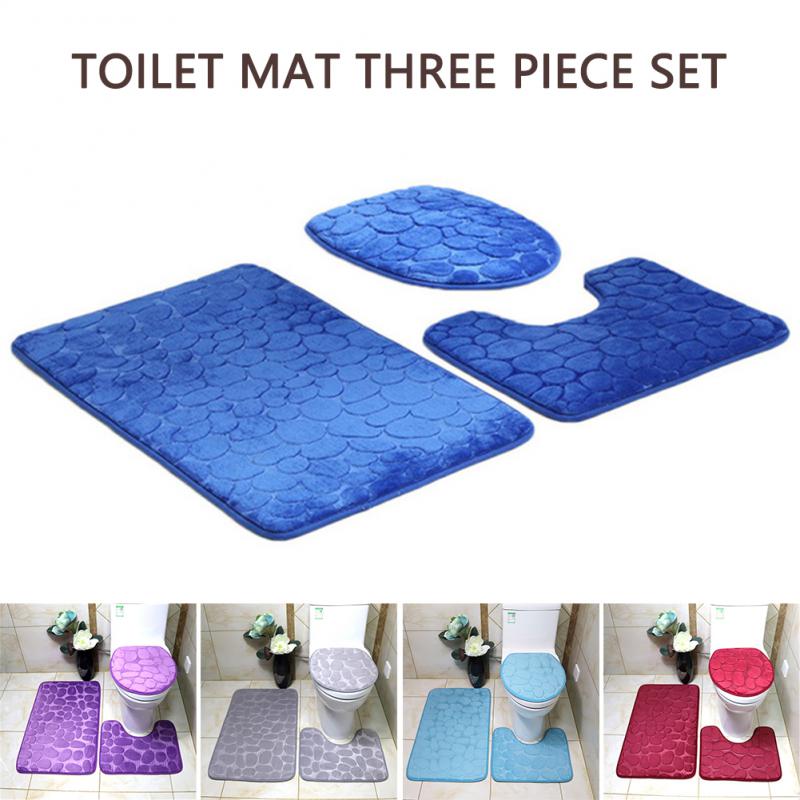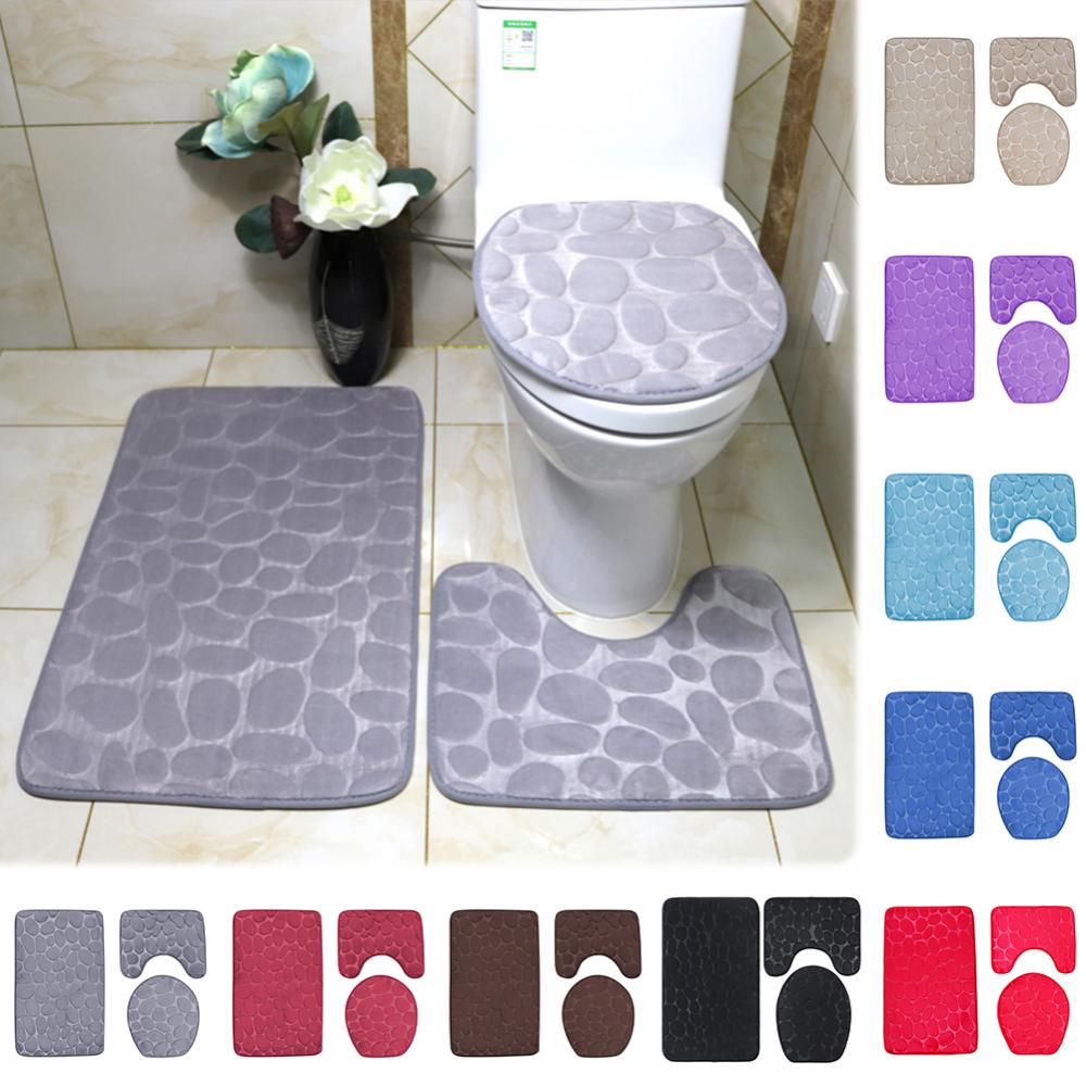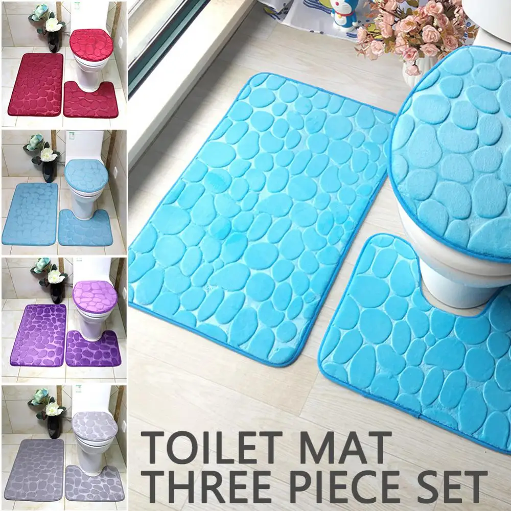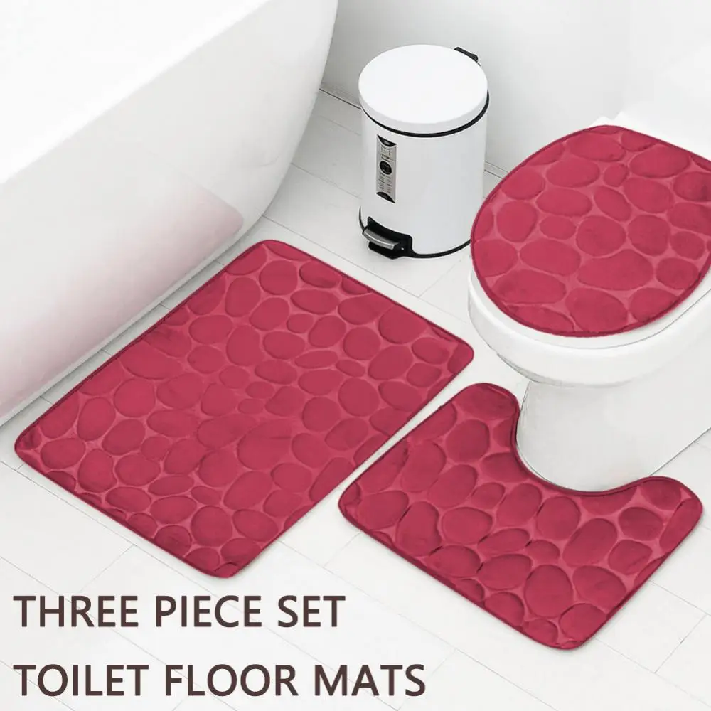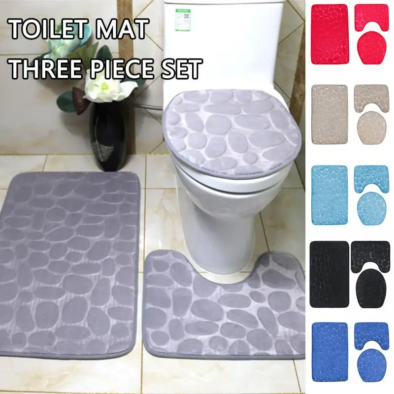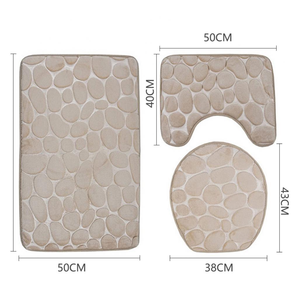 Крышка сиденья для унитаза Набор из 3 предметов Коврик для ванной Коврик для душа Домашняя ванная комната Противоскользящий Впитывающий Коврик Галька Декор для ванны Ковер