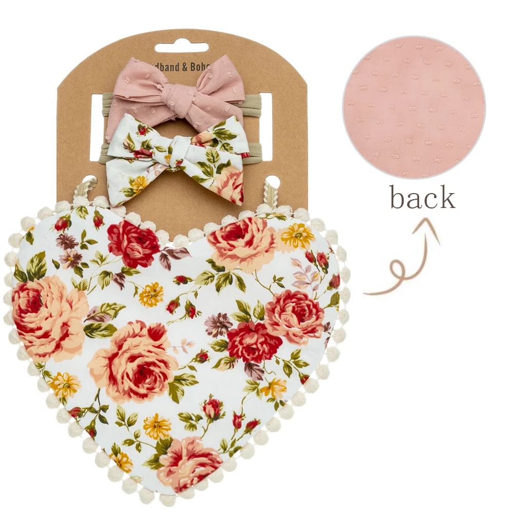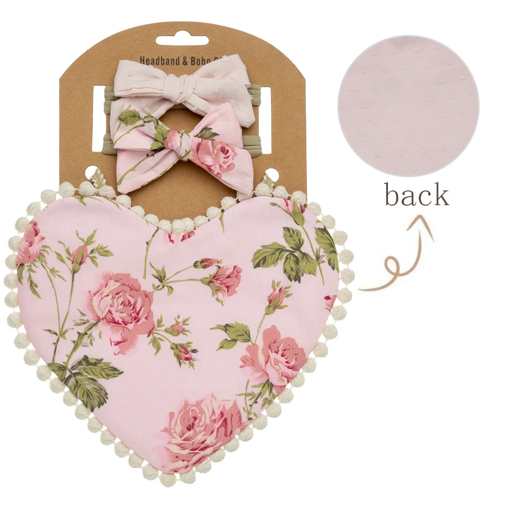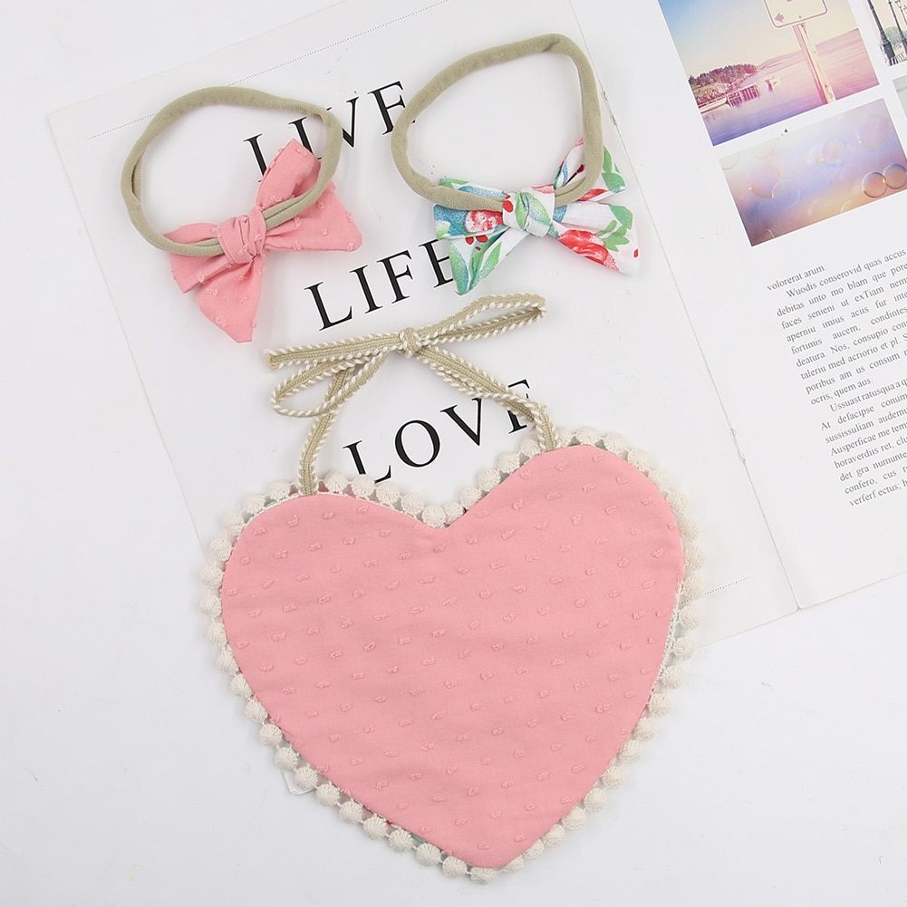3 шт./набор, детские нагрудники с сердечками для кормления, повязка на голову с бантом, двусторонний цветок, слюнявчик, полотенце для детей, реквизит для фотосессии, повязка на голову