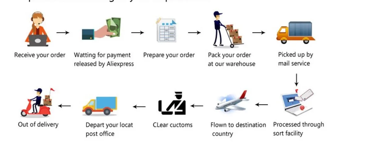 7. Из-за наличия на складе и разницы во времени мы отправим ваш товар с нашего первого доступного склада для быстрой доставки.