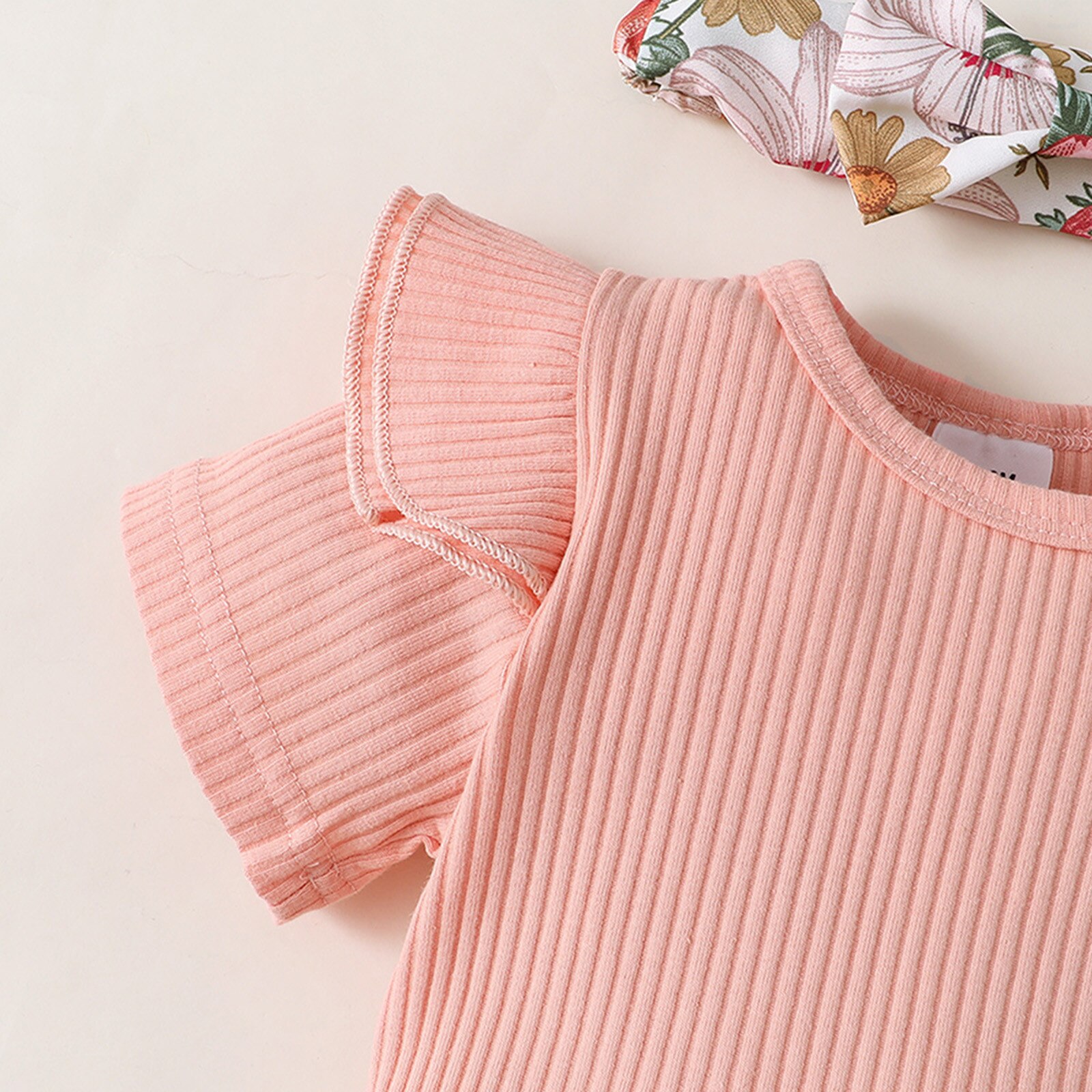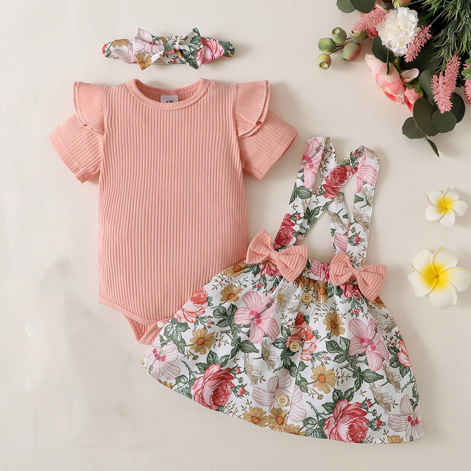 Малыш девочек с коротким рукавом Цветочные печати топы жилет платье повязки 3 шт повседневный костюм наряды
