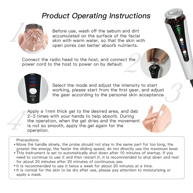11. Этот инструмент относится к домашнему косметическому инструменту. Пожалуйста, не используйте его для других целей, кроме красоты. Пожалуйста, внимательно прочитайте меры предосторожности перед использованием и правильно используйте этот продукт.