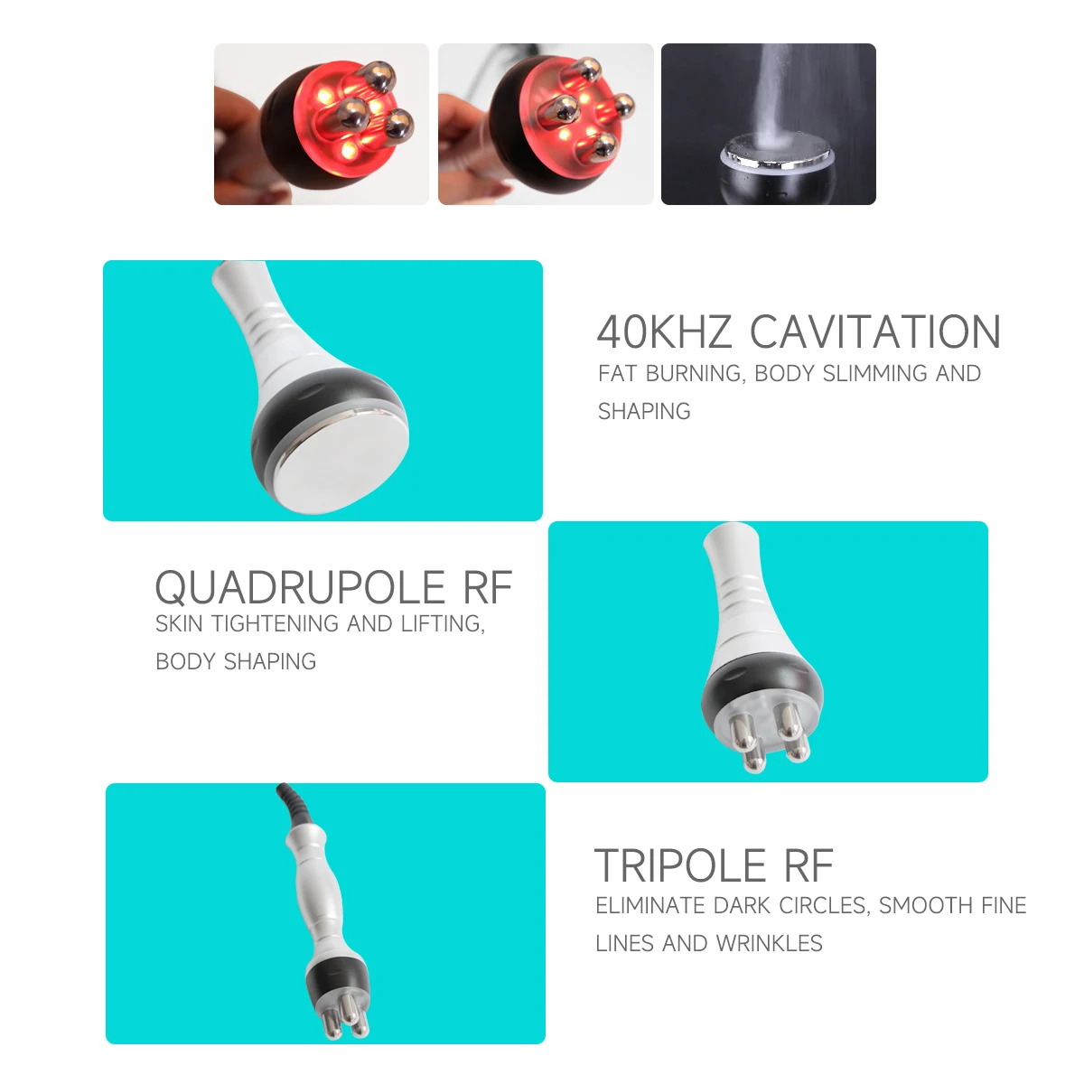 Использование собранной сильной звуковой волны взрыва жирной головки излучаемых звуковых волн 40 кГц в человеческое тело, после того, как это позволяет жировым клеткам организма оказывать сильное воздействие, может эффективно сжигать калории, влажность и жировые клетки взрывают, жировые клетки уменьшились, чтобы достичь эффекта удаления жира.