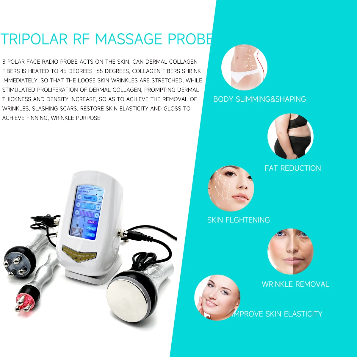 3-полюсная радиоголовка для лица действует на кожу, может дермальные коллагеновые волокна нагреваться до 45-65 градусов, коллагеновые волокна Victoria немедленно сжимаются, так что дряблые морщины кожи растягиваются, стимулируя пролиферацию кожного коллагена, вызывая увеличение толщины и плотности кожи, Чтобы добиться удаления морщин, разрезания шрамов, восстановления эластичности и блеска кожи для достижения укрепления и разглаживания морщин.
