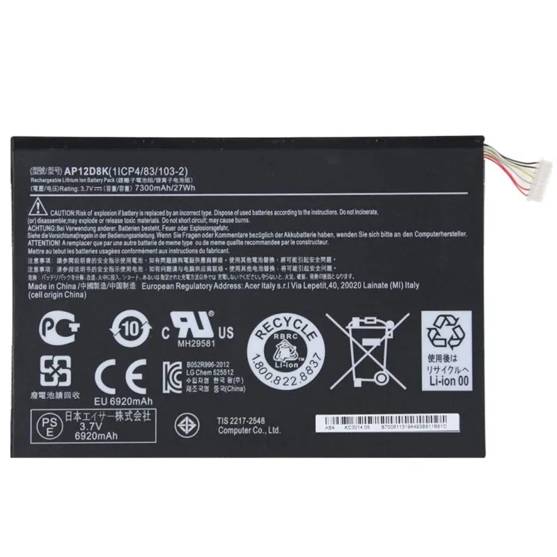 3 ячейки, новый оригинальный AP12D8K OEM перезаряжаемый аккумулятор для планшета Acer Iconia Tab A3-A10 W510 W510P 3,7 в 27 Вт/ч 7300 мАч