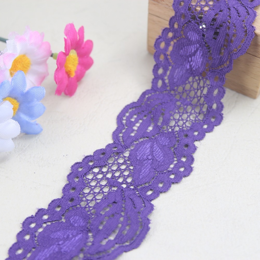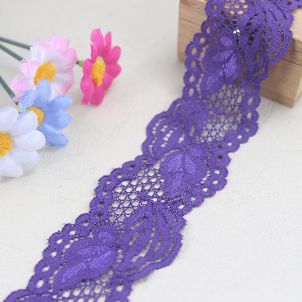 3 ярдов/партия 40 мм Ширина темно-фиолетовый эластичный стрейч кружево отделка шитье/одежды/одежда аксессуары
