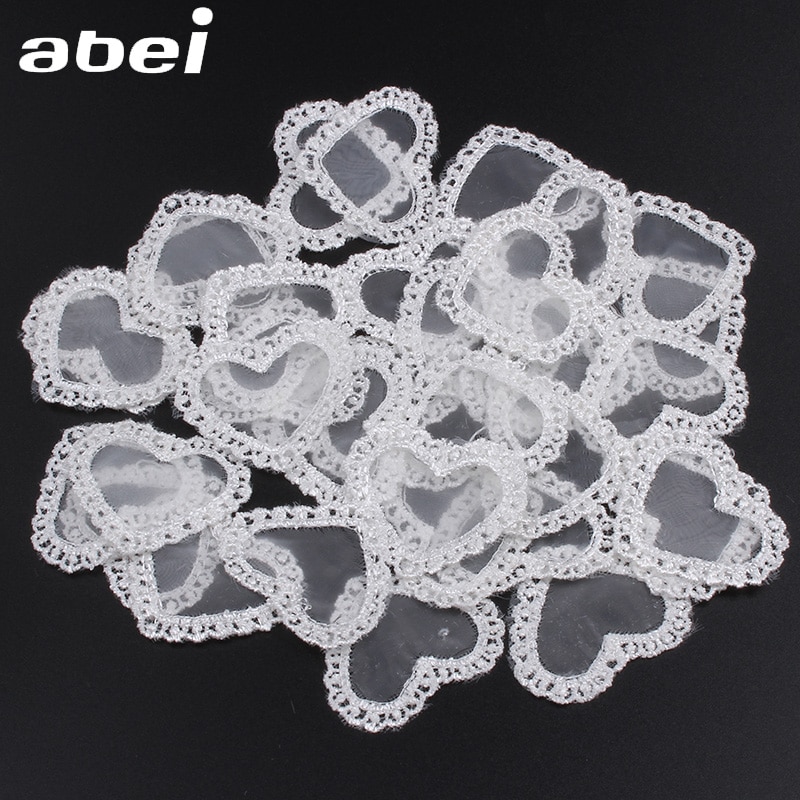 30 шт./лот, свадебное платье из органзы с вышитыми сердечками и кружевной аппликацией, аксессуары для одежды
