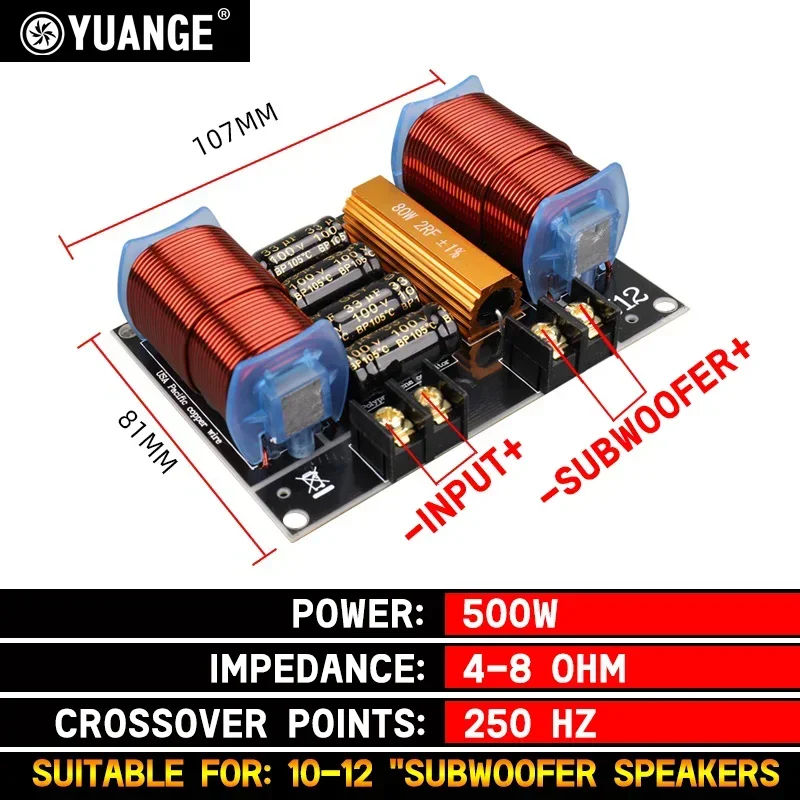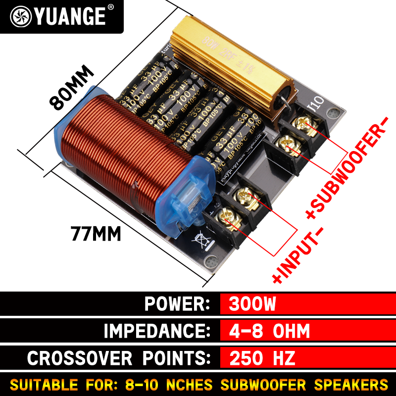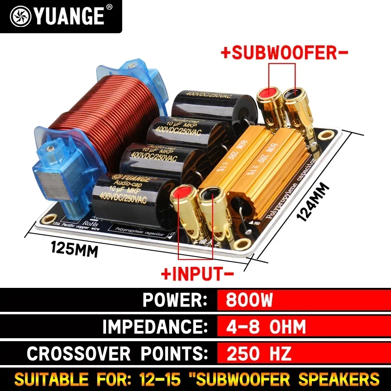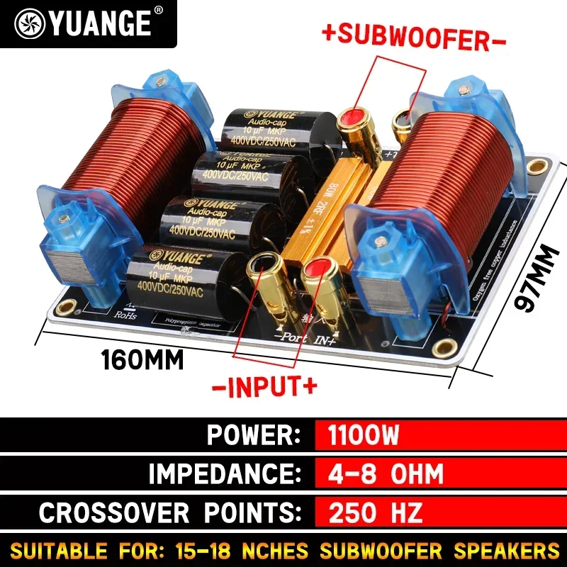 300 Вт-1100 Вт семейный чистый тяжелый бас делитель, 6,5 дюйма, 8 дюймов, 10 дюймов, 15 дюймов, 18 дюймов низкочастотный динамик, перекрестный фильтр 250 Гц, производительность