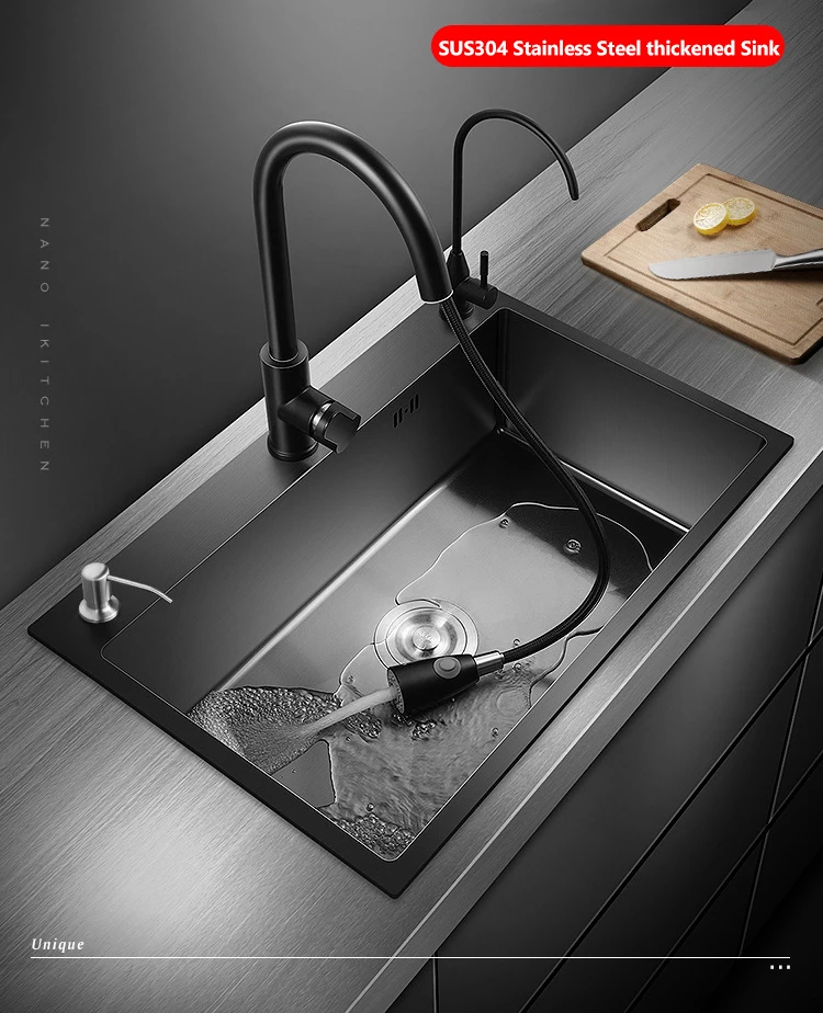 304 кухонная раковина из нержавеющей стали Topmount одна чаша темно-серый умывальник для дома приспособление с кухонным смесителем сливные аксессуары