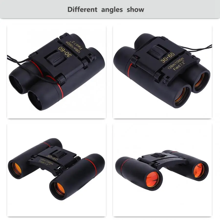 30x60 Мини бинокулярный металлический двойной фокусирующий бинокль зум наружный просмотр кемпинга птичий телескоп с сумкой ремешок