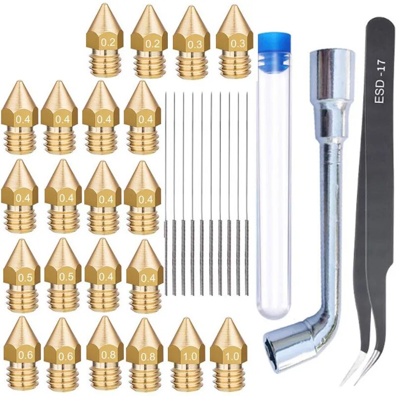 34 в 1 сопло MK8 1,75 мм 0,2/0,3/0,4/0,6, пинцет, гаечный ключ и 0,35 игл для Creality CR-10 10S Ender 3 5, запчасти для 3D-принтера