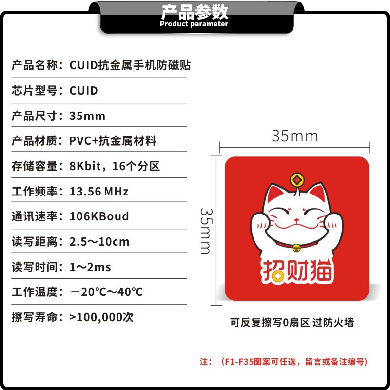 35*35 мм телефонные металлические наклейки CUID chip 13,56 МГц RFID IC записываемые бирки
