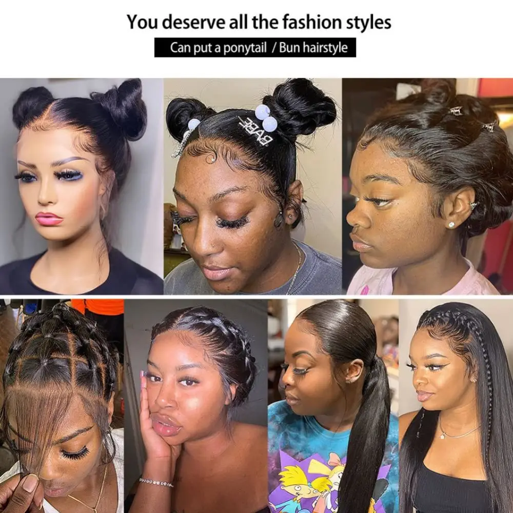 360 бесклеевые прямые полноразмерные парики из человеческих волос, прозрачные бразильские фронтальные парики из человеческих волос, предварительно выщипанные для женщин ZWJSH
