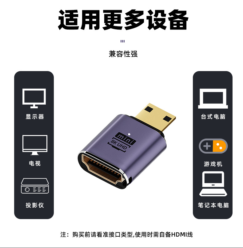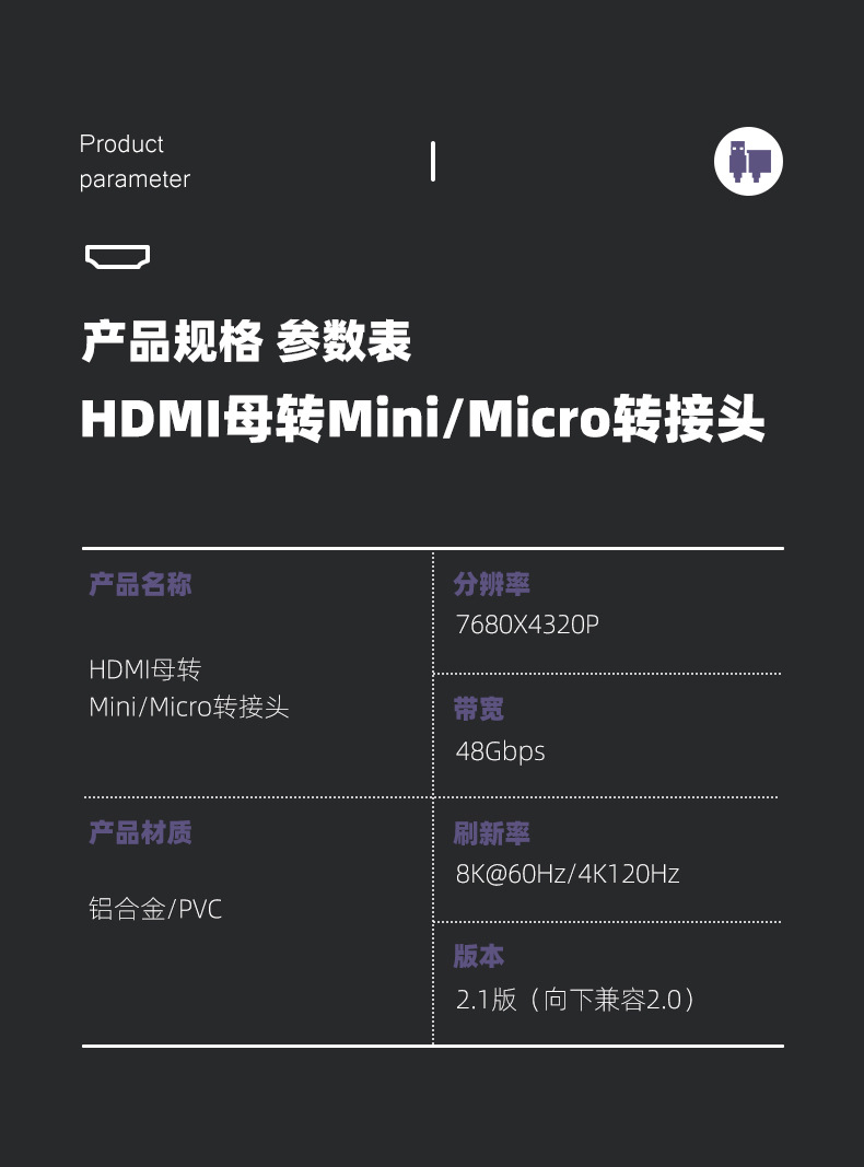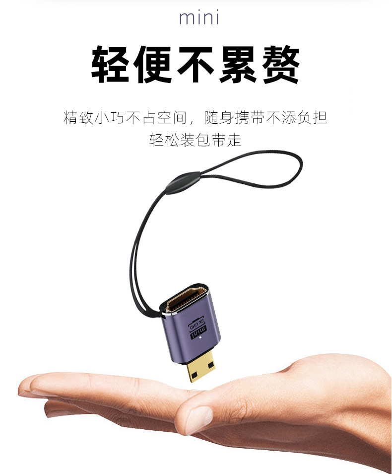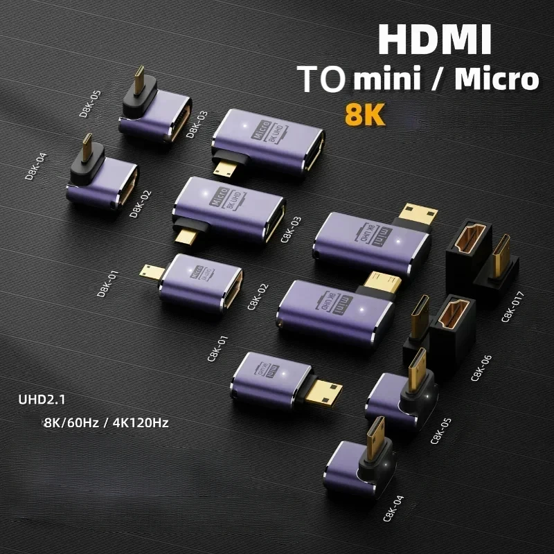 360 градусов, U-образный мини-адаптер HDMI, 180 Mini HDMI штекер-HDMI гнездо, угловой L-конвертер, расширение HD 2,1 в, 4K 8K 60 Гц