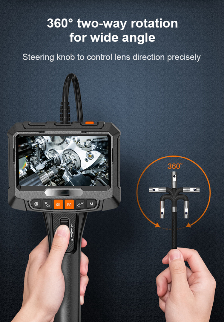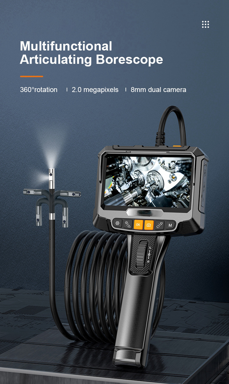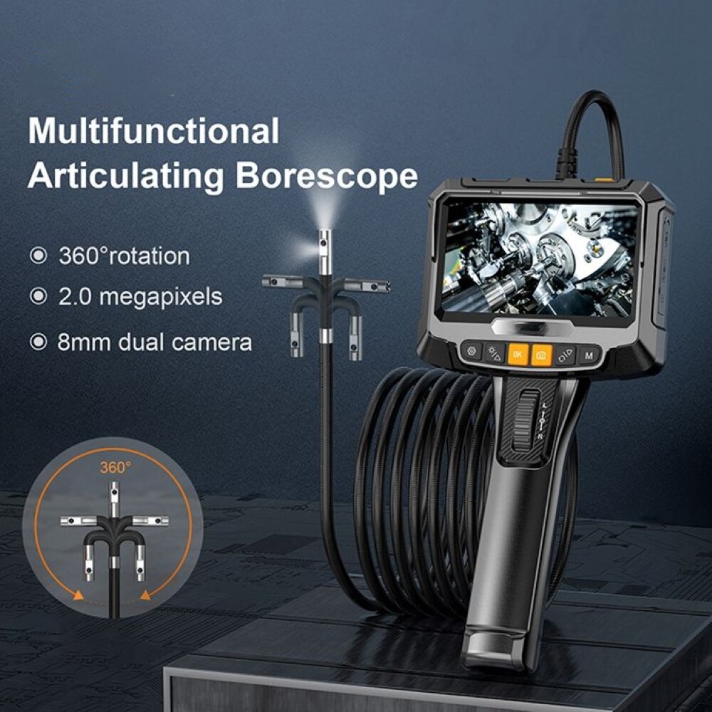 360 рулевое управление, Промышленная камера-эндоскоп, 8 мм с одним и двумя объективами, экран 1080P 5 IPS, инспекционный бороскоп для канализационной трубы автомобильного двигателя
