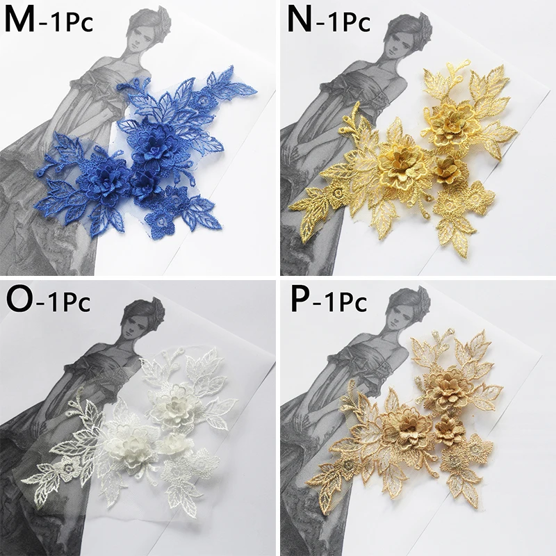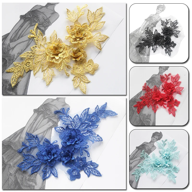 3D Цветочная Кружевная аппликация, имитация жемчуга, тюль, вышивка, нашивки «сделай сам», шитье, кружевной воротник, Декор, одежда, аппликация, аксессуары, 1 шт.