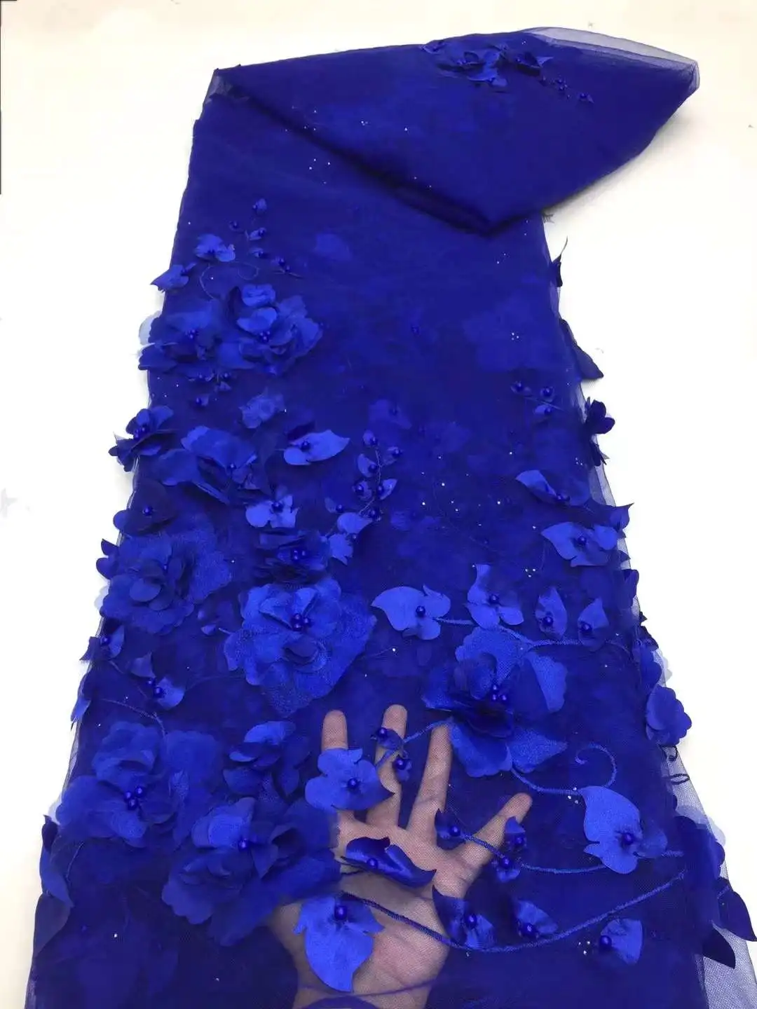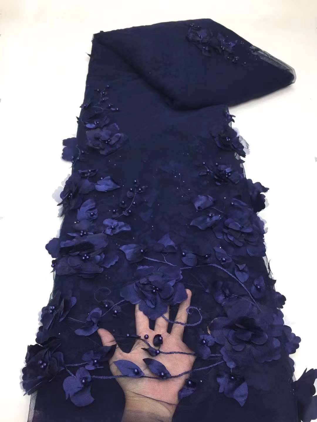 3D цветы в синей французской кружевной ткани 2022 Высококачественная Кружевная Сетка африканская кружевная ткань с бусинами кружевная ткань для свадьбы