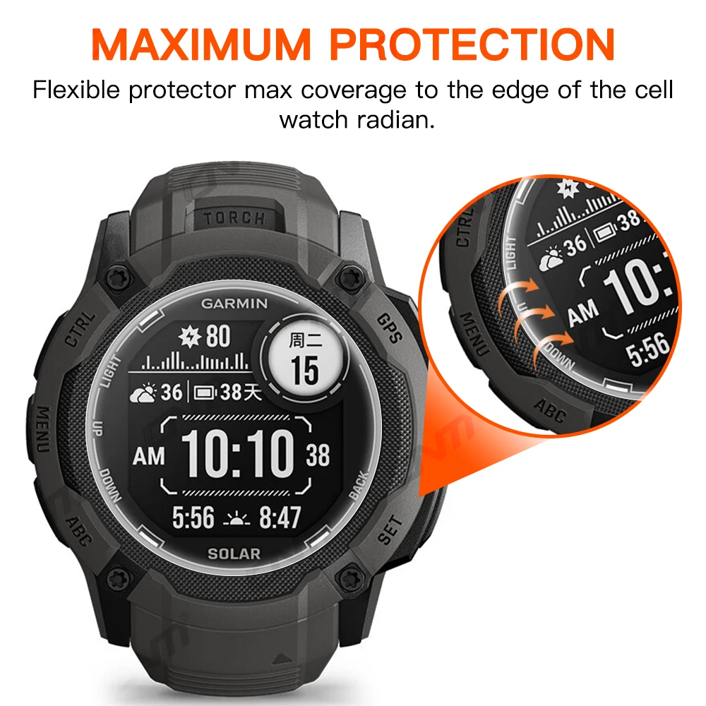 3D Curved Fit Full Screen Protector Film for Garmin instinct 2X Solar Ultra Clear Protective Film for Garmin instinct 2X Solar