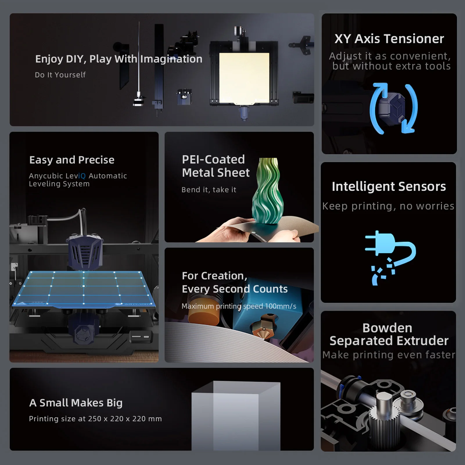 ♦Выравнивание одной кнопкой: оснащено собственной системой автоматического выравнивания Anycubic LeviQ. Для выравнивания кровати требуется всего 5 мин. Точное обнаружение и быстрое использование, позволит вам избавиться от утомительного ручного выравнивания.