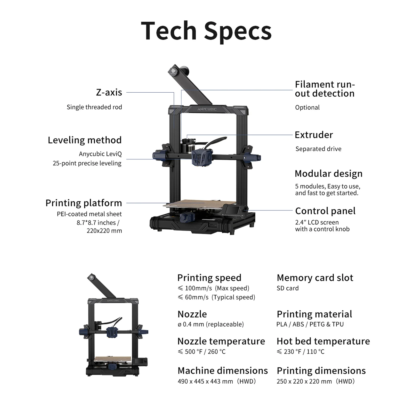 3D-принтер ANYCUBIC KOBRA GO FDM, 25 точек, автовыравнивание, 22*22*25 см