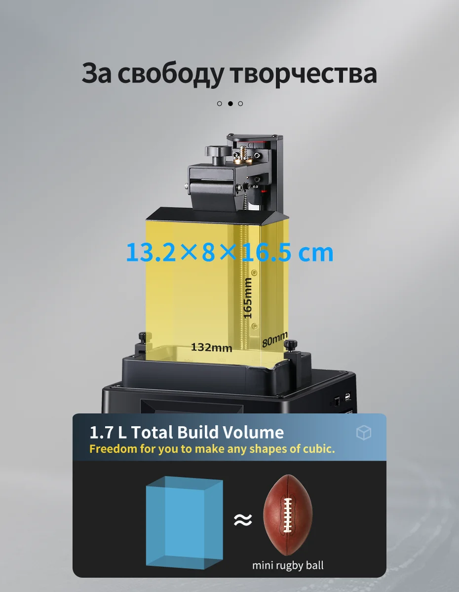 AnyCubic Фотон подойдет как для повседневной носки, так 4K может напечатать до 6,5x5,2x3,1 в такой стране, как. / 16,5x13,2x8 см (HWD) на какое-то время, похожими разерами мини мяч для регби. 58,9 oz. Нажмите на изображение для просмотра в полный размер/1,7 L общий объем сборки оставляет достаточно места и свободу для вас, чтобы сделать любые формы из куб.
