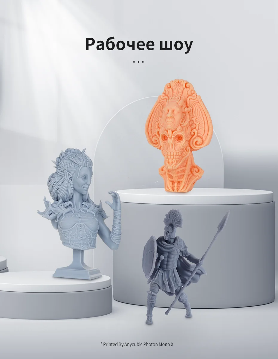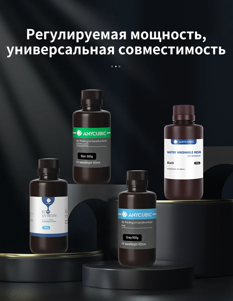 С 30%-100% светильник регулирования мощности, Anycubic Photon Mono X поддерживает не только обычные 405nm УФ-смол, но и специальные смолы, что делает его совместимым с большим количеством материалов и сред.