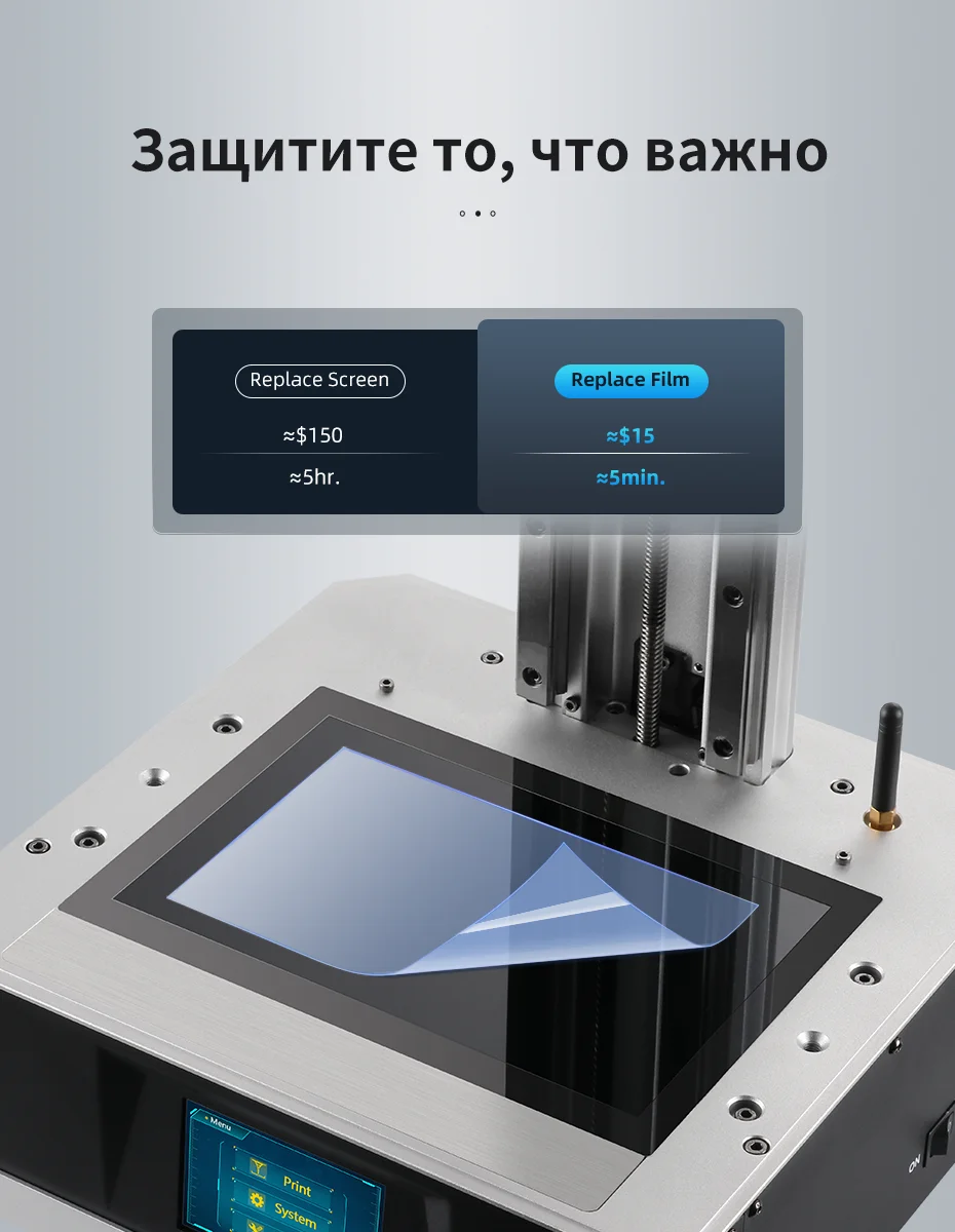 Чтобы лучше защитить свой Премиум-экран, Anycubic Photon Mono X добавила специальную и сменную антицарапную пленку выше самого экрана, что делает этот дорогой экран гораздо более прочным, чем его конкурентов.