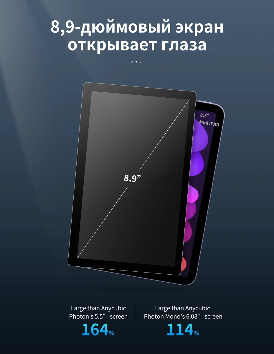 Anycubic Фотон подойдет как для повседневной носки, так X является одним из самых первых изделий, которые дают большой 8,9 "сенсорный экран, который является 164% больше того, что вы Anycubic Фотон с 5,5" экран, И на 114% больше, чем Фотон моно 6,08 "в области экрана.