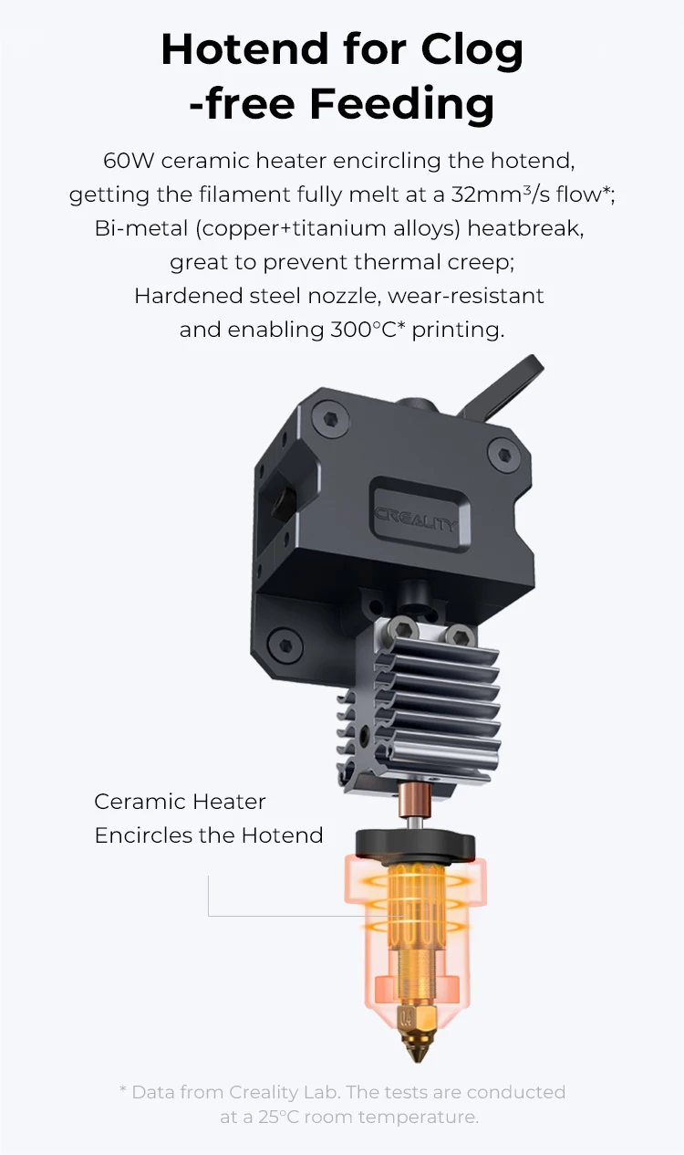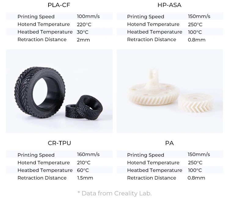 * Данные из лаборатории Creality. Испытания проводятся при комнатной температуре 25 ℃.