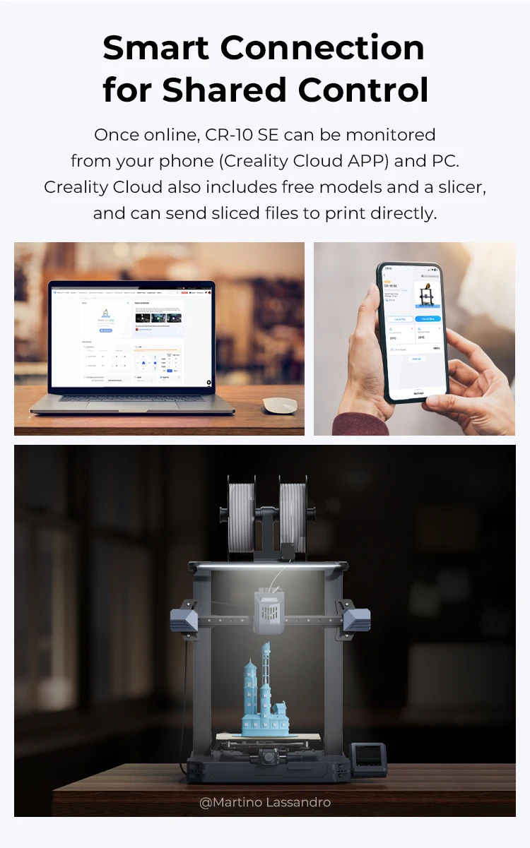 Однажды онлайн CR-10 за ним можно следить с телефона (Облачное приложение Creality) и ПК.