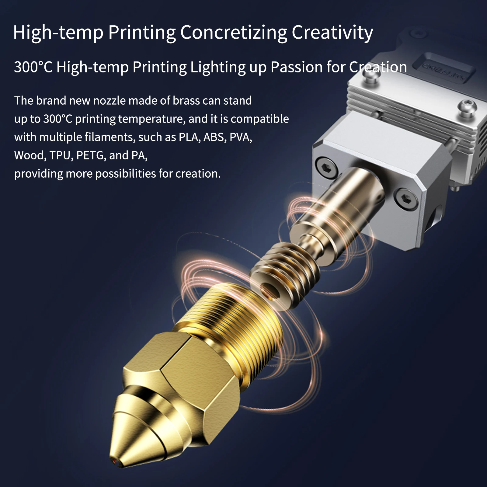 Высокотемпературная печать:Сопло из латуни выдерживает печать до 300 ℃. Он совместим с несколькими нитями, такими как PLA, ABS, Wood, TPU, PETG и PA.