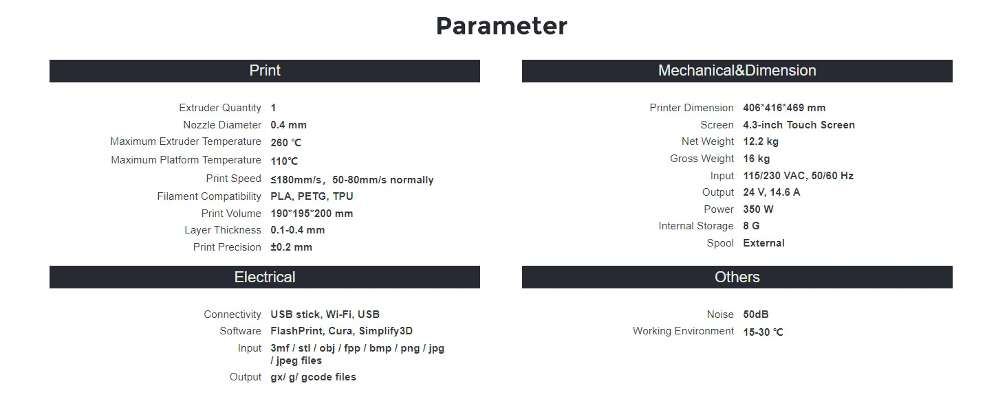 <span class="SnowProductCharacteristics_SnowProductCharacteristicsItem__titleContent__534v9">Fliament</span> PLA, PETG, TPU