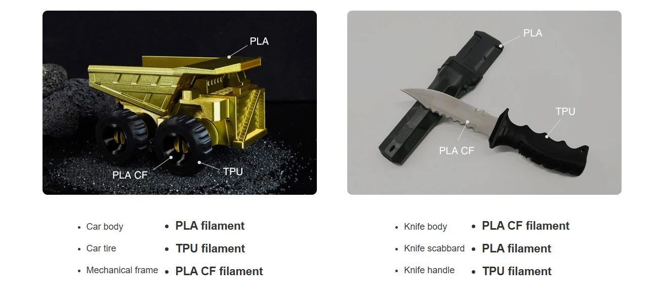 Отдельно печатая эти детали, вам нужно использовать различные типы нитей, и Finder 3 хорошо для этого подходит!