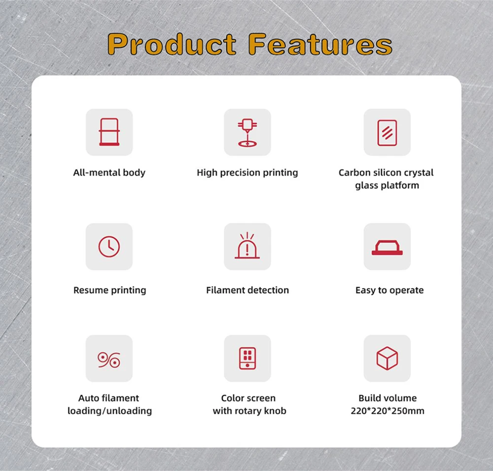 Размер печати: 220x220x250 мм/8,66x8,66x9,84 дюйма