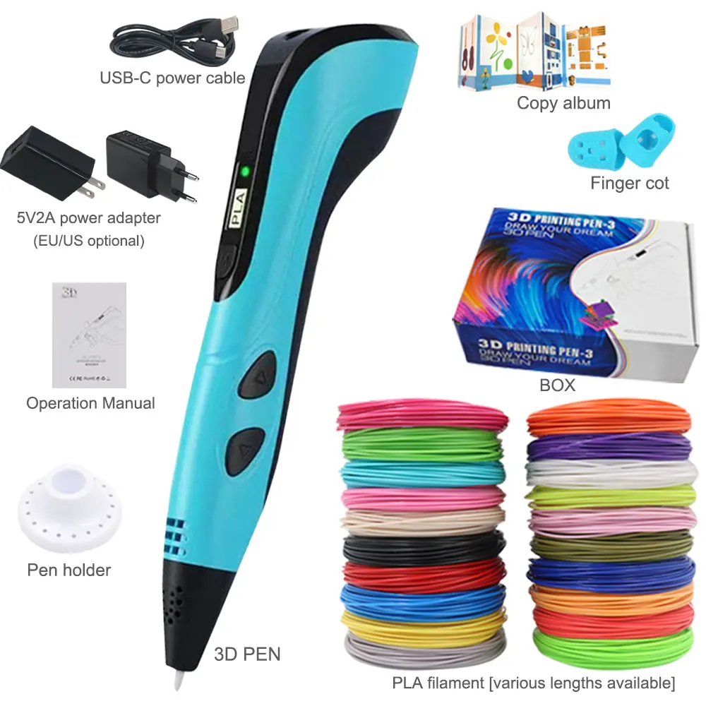 3d-ручка для детей, ручка для 3d-печати со светодиодным экраном, 30 цветов, 200 м пла и адаптер питания, подарок на Рождество, день рождения, «сделай сам» для детей