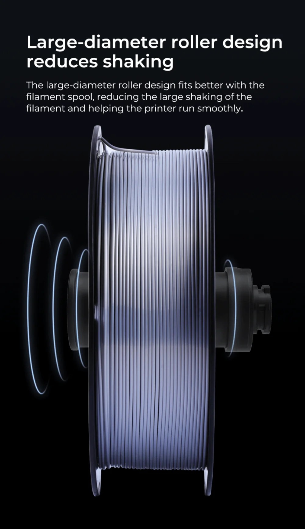 Конструкция ролика большого диаметра лучше сочетается с катушкой с нитью, уменьшая большое тряску нити и помогая принтеру работать плавно.