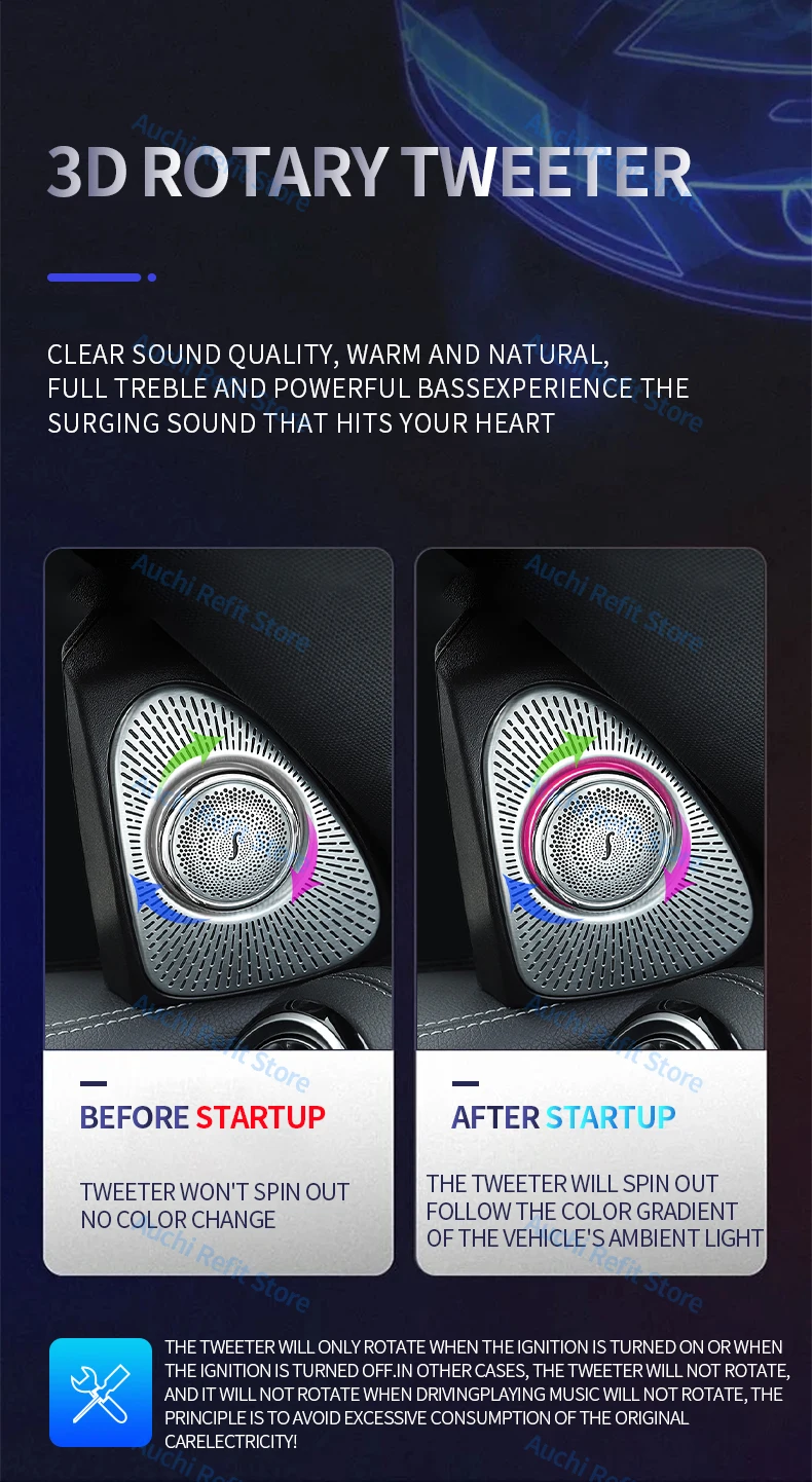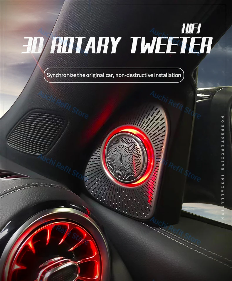 3D Вращающийся Динамик-твитер, колонка для Mercedes Benz GLB A-Class X247 W247 w177, светящийся звуковой сигнал, труба, установка для окружасветильник, 64 цвета