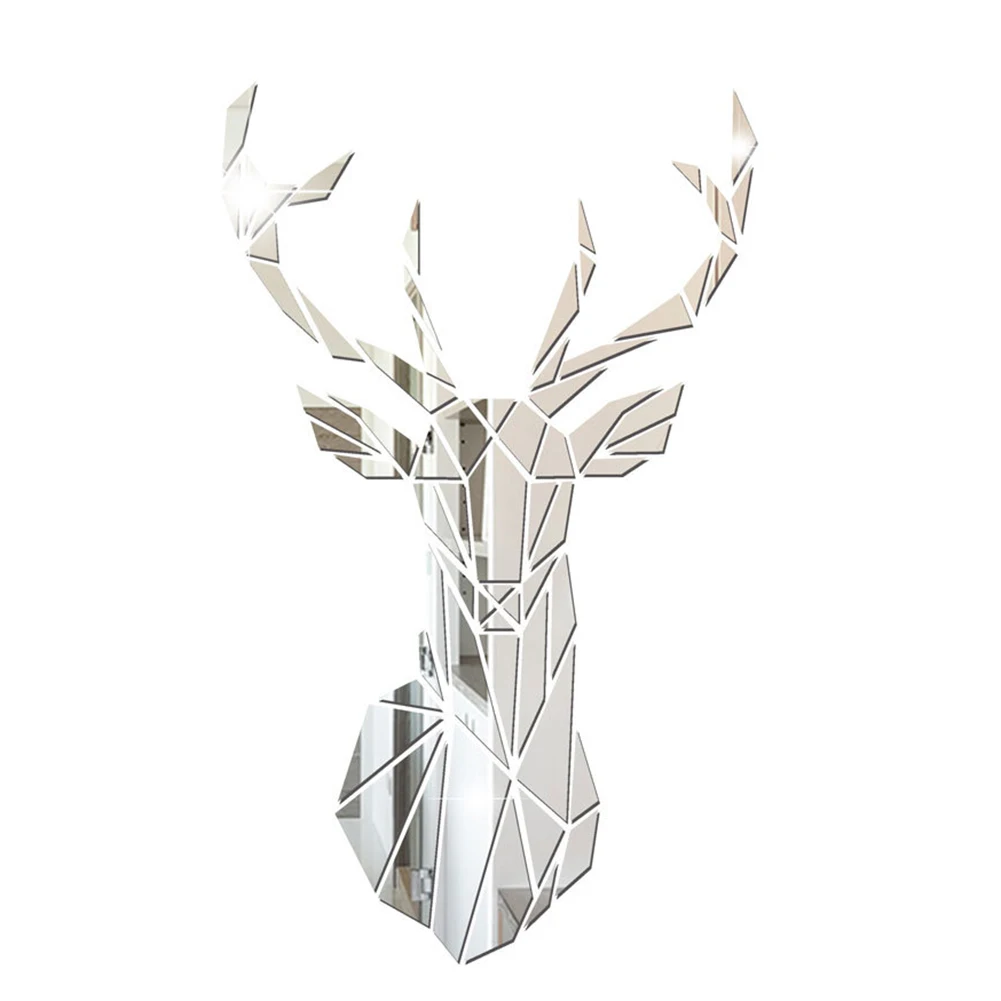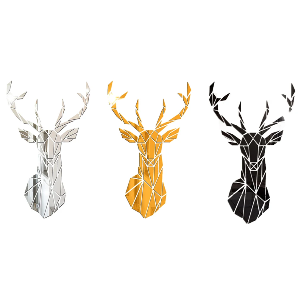 3D зеркальная Настенная Наклейка с головой оленя, домашний декор, акриловая Зеркальная Наклейка, настенная Съемная художественная наклейка, Настенная бумага для гостиной