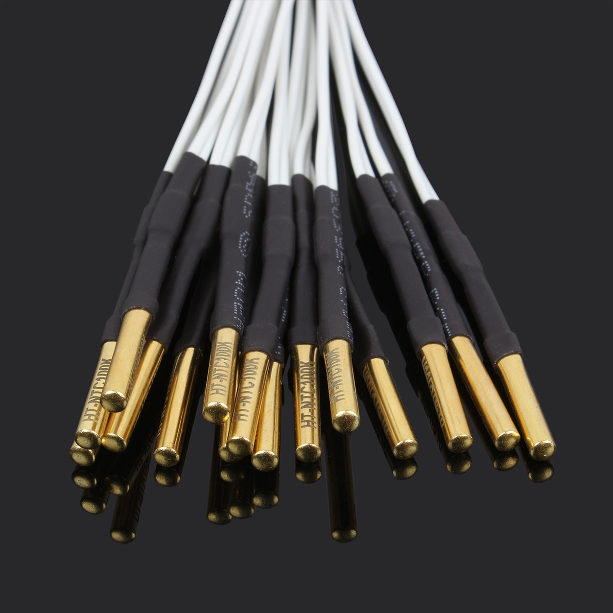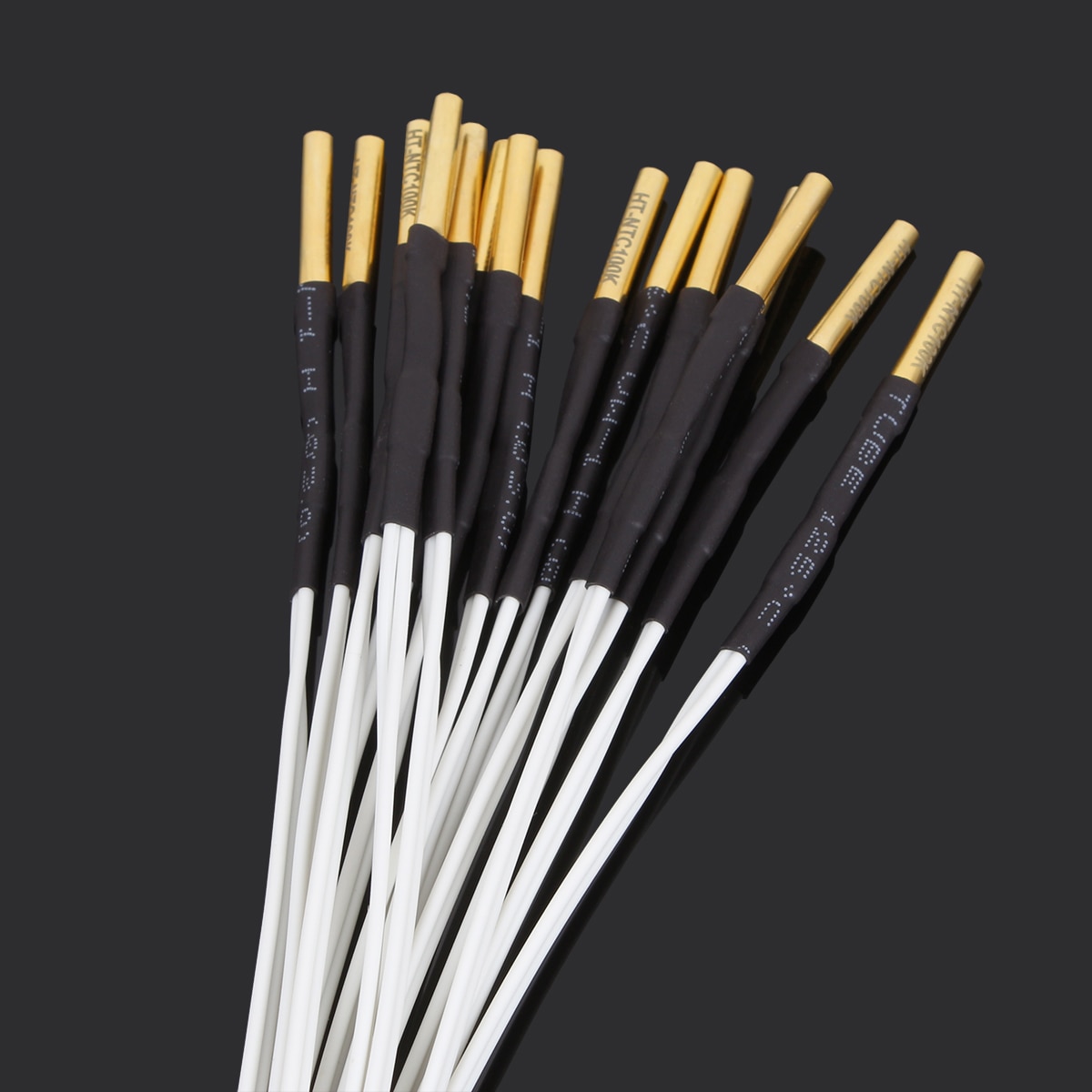 4. HT-NTC100K thermistor adopts white high-temperature cord, can bear higher temperature. And for customers' convenience, the wires adopts line connection, the customer can tear the wires depends on their application. The high temperature line is double thicker than others in the market, not easy to break off.