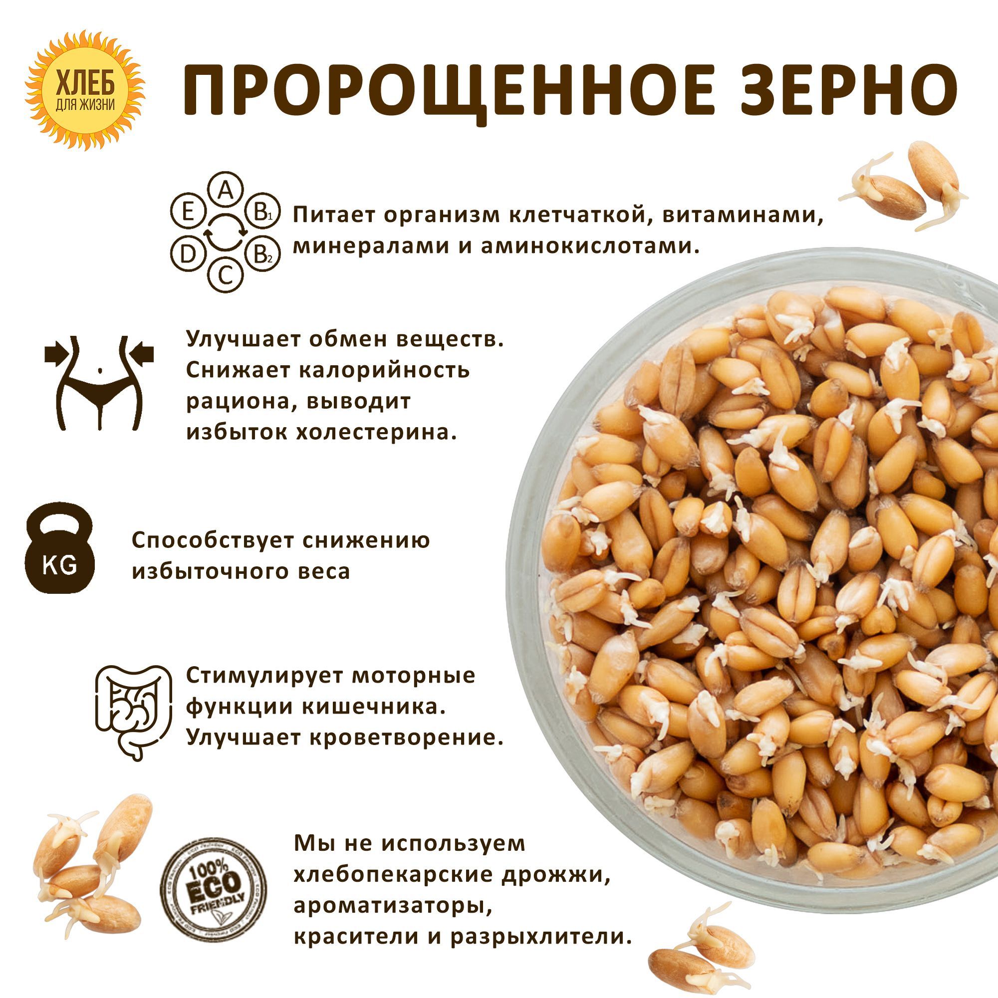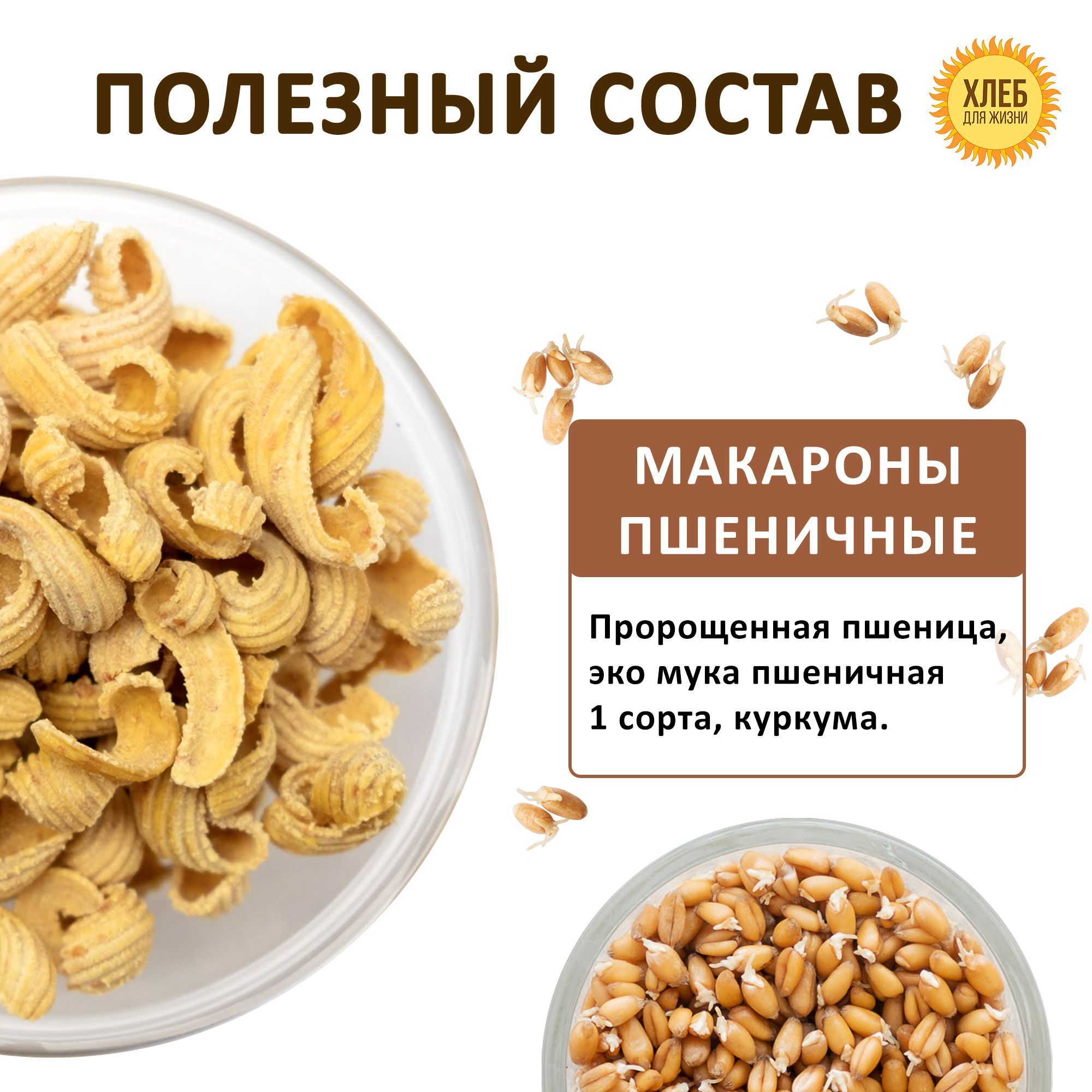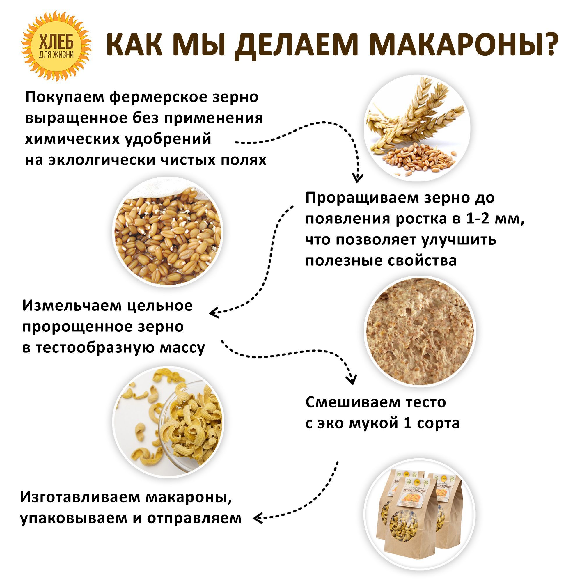 Также макароны из пророщенной пшеницы содержат меньше калорий, чем обычные макароны, что делает их отличным выбором для тех, кто следит за своей фигурой.Мы закупаем высококачественную эко-пшеницу выращенную без применения химических удобрений у проверенных фермеров. Мы следим за всем процессом производства, чтобы гарантировать максимальную сохранность полезных свойств продукта.Пророщенные зерна способствуют улучшению пищеварения и общему укреплению организма. Макароны из пророщенной пшеницы содержат большое количество клетчатки, белков, витаминов и минералов, которые необходимы для правильного функционирования организма. Разнообразие блюдМакароны - это универсальный продукт, который можно использовать для приготовления множества блюд. Они могут быть основой для пасты, супов и других блюд.
