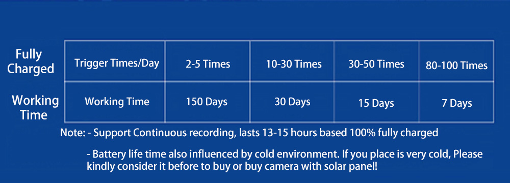-Подключите солнечную панель 3 Вт или 5 Вт для зарядки аккумуляторной камеры, чтобы обеспечить нон-стоп питание