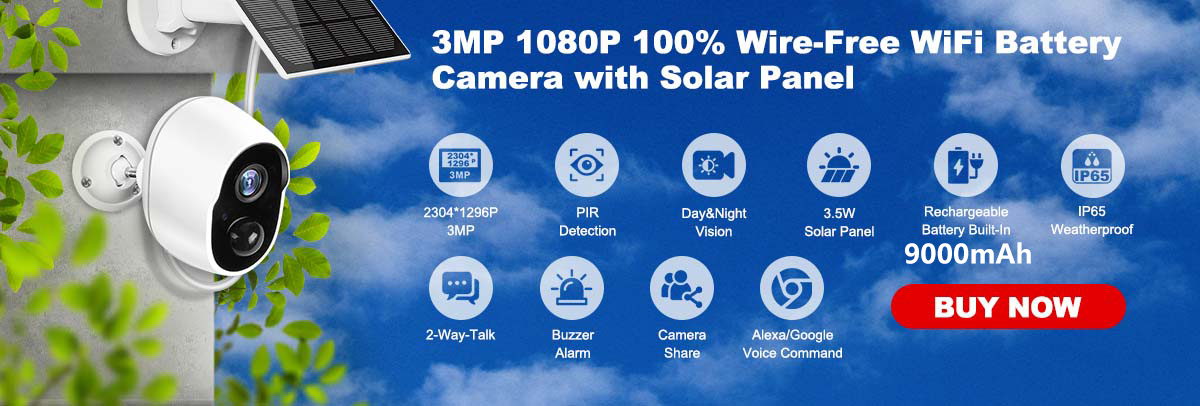 Встроенный аккумулятор 5200mAh или 9000mAh (опционально) обеспечивает длительное время работы. Солнечная камера безопасности может работать независимо, камера может получать бесперебойную солнечную энергию от солнечной панели!