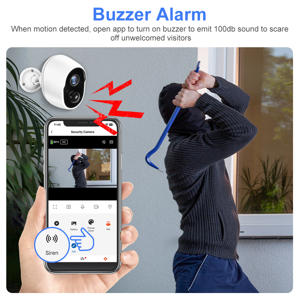 По сравнению с автоматической сиреной, наша аккумуляторная камера tuya позволит избежать жалоб соседей.