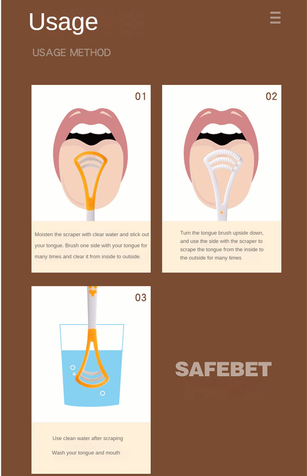 3. Скребок для мягкого языка можно согать под углом 90 °, с мягкой головкой, которая лучше подходит для поверхности языка и легко чистится.