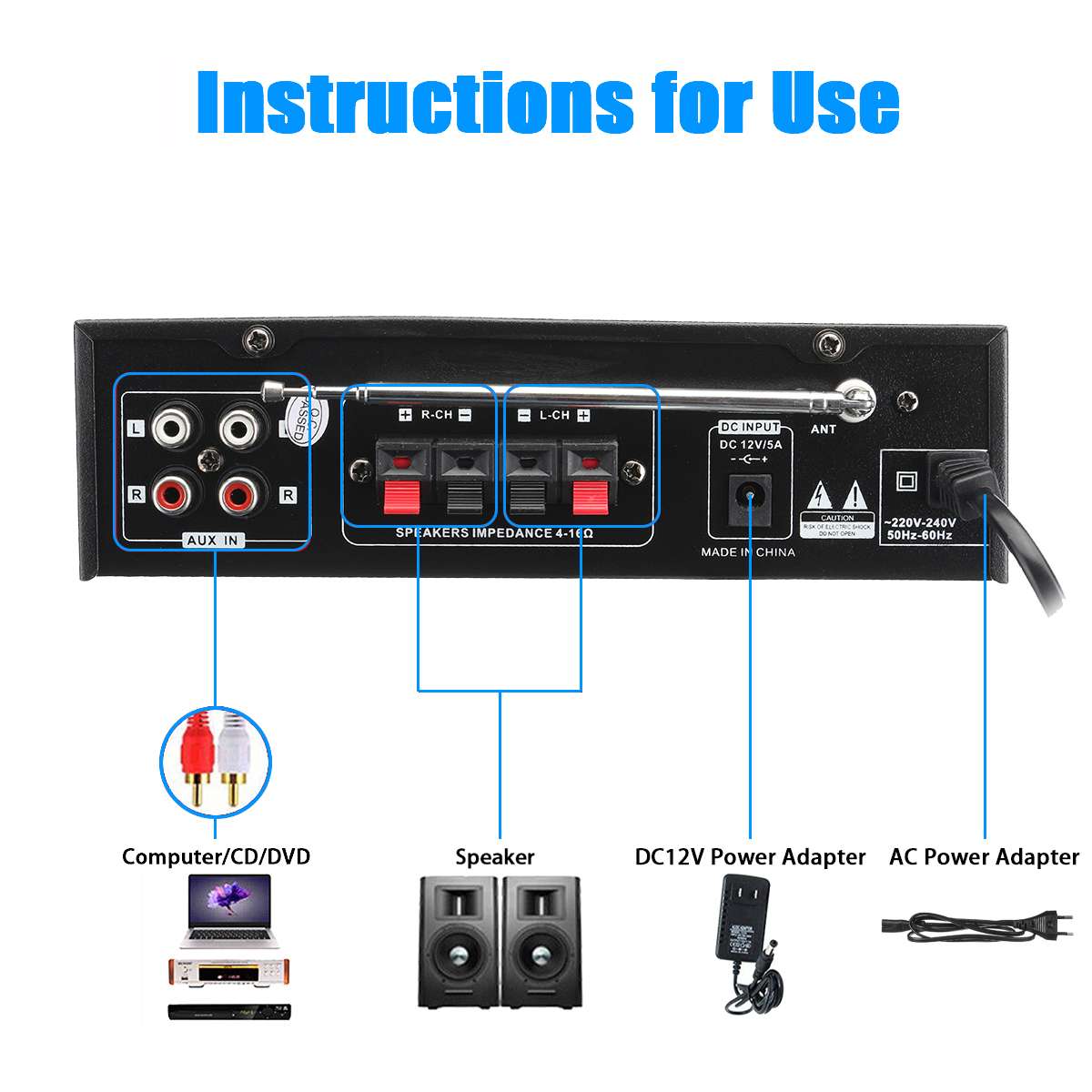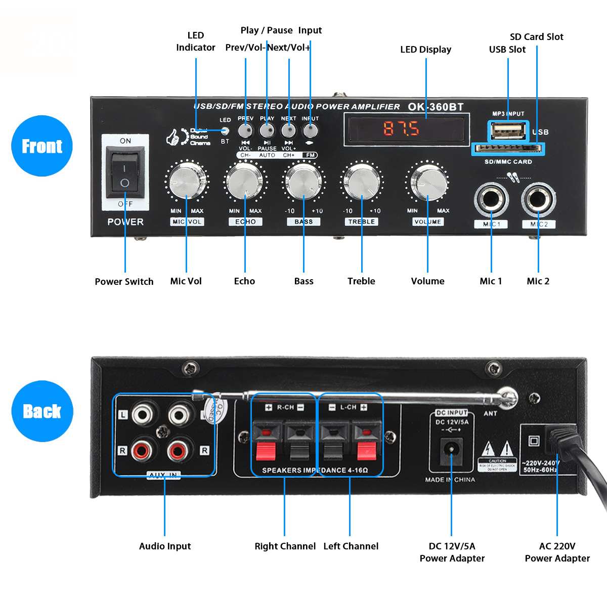 -4,1-канальный выход, можно подключить 2 пары динамиков ниже 8 дюймов и 1 сабвуфер.