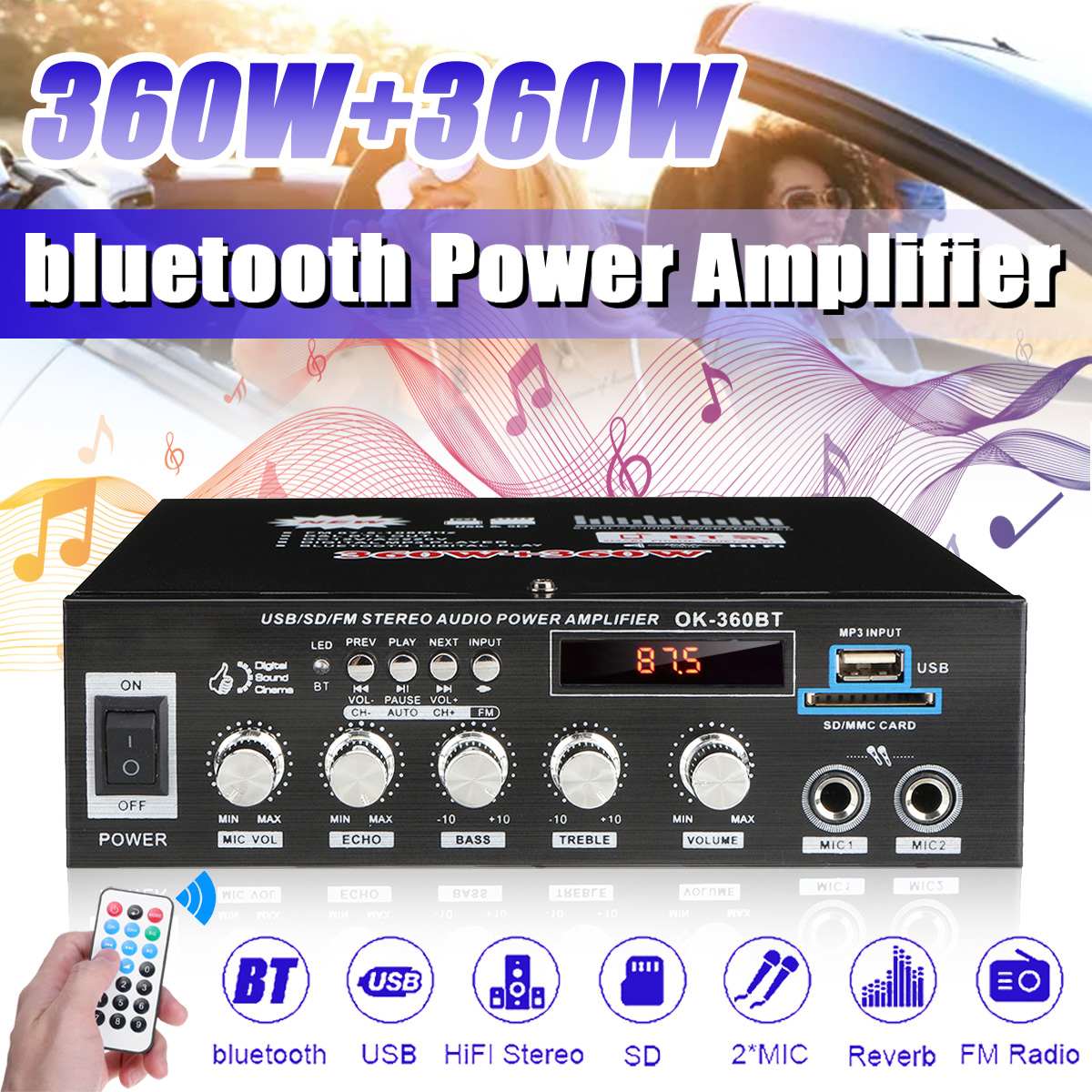 -Цифровой усилитель мощности звука Bluetooth Mini HIFI.