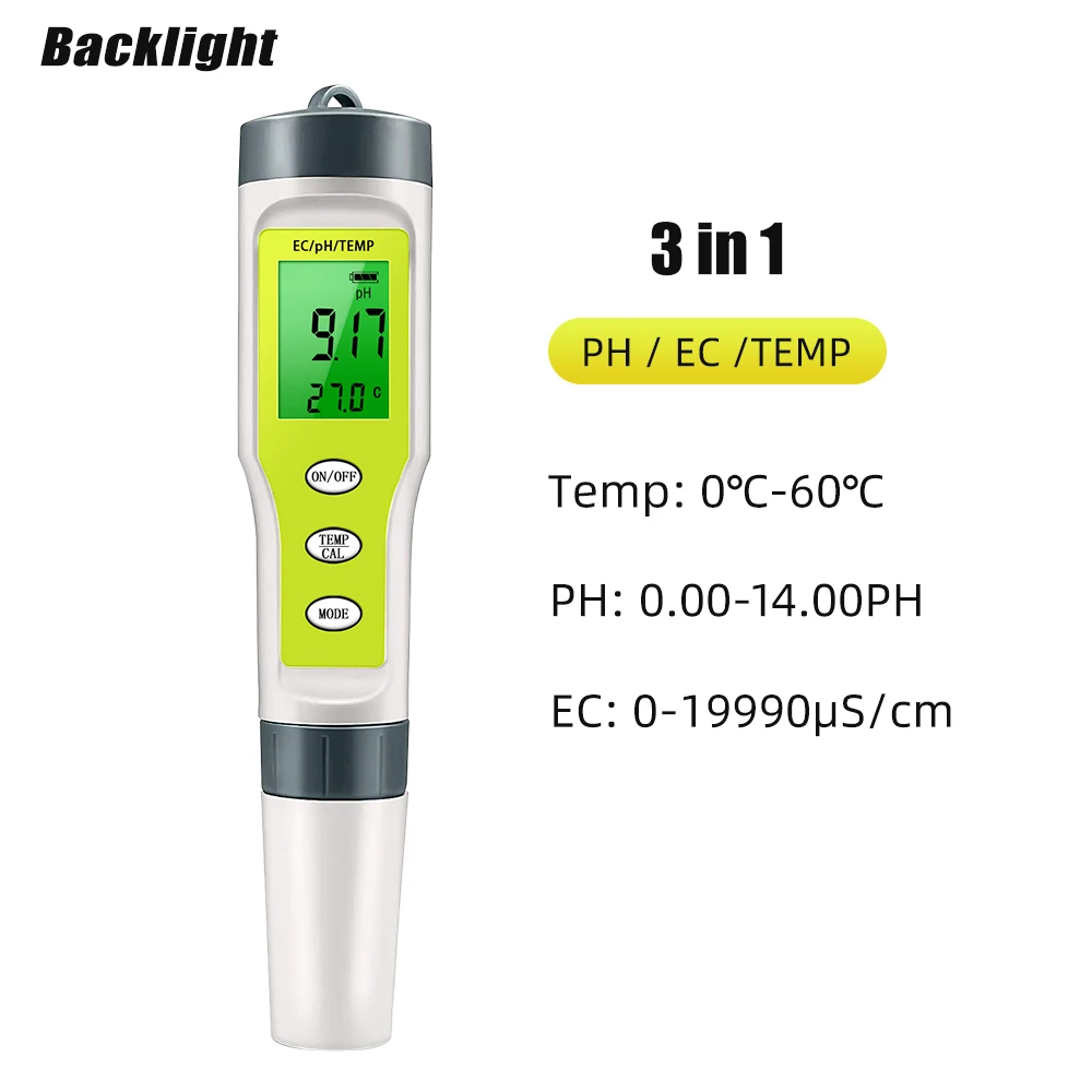 ► Диапазон измерения: pH: 0,00-14,00 pH; EC: 0-19990 мкСм/см