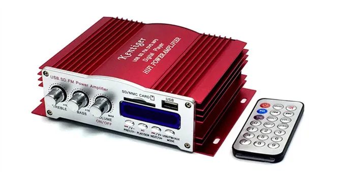 4-канальный усилитель KENTIGER 3001 с пультом дистанционного управления, USB/SD-картой, FM-радио, 12 В 5 А, адаптер питания и AUX-кабель опционально