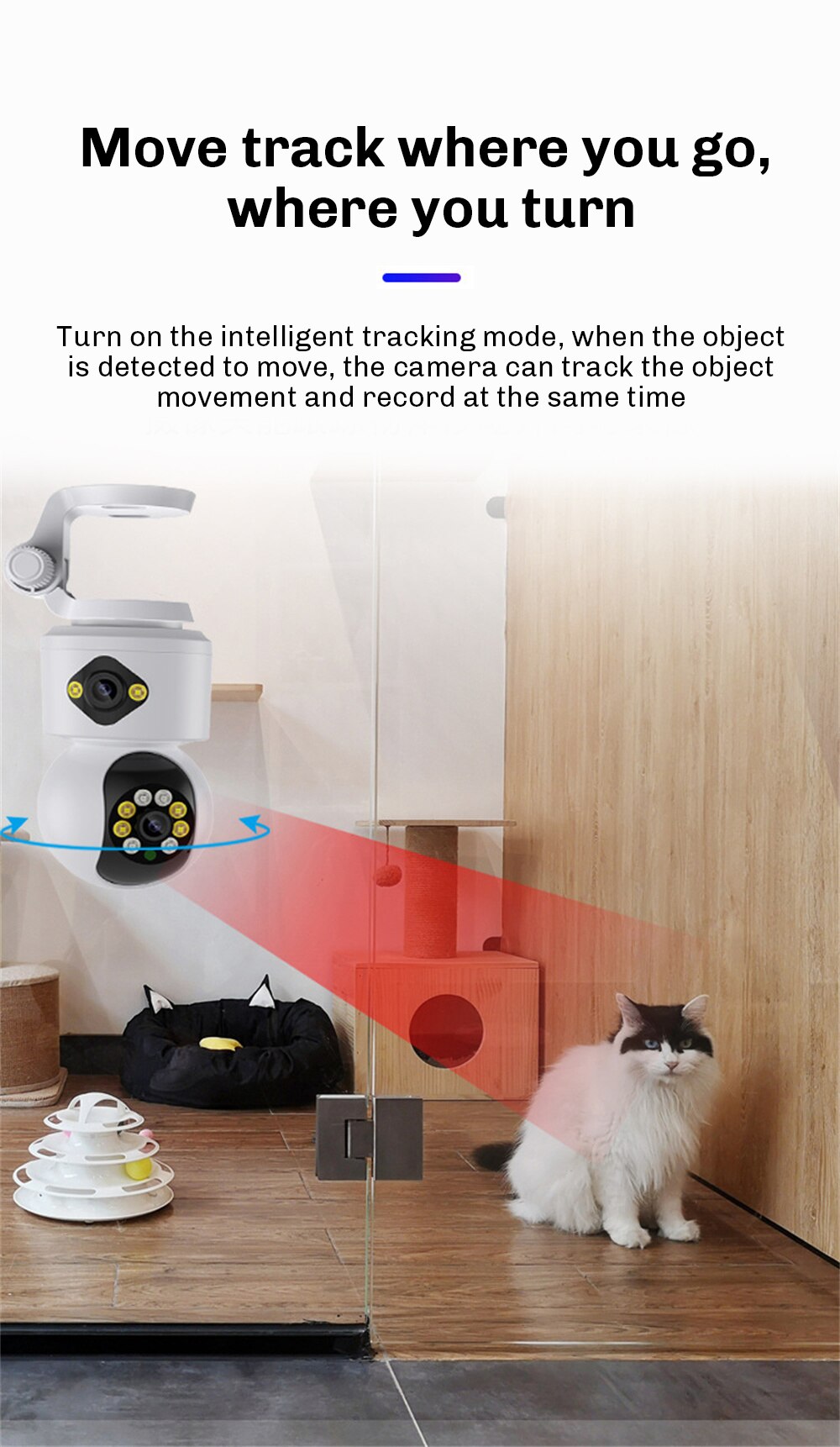 • PTZ-камера с двумя объективами:Камера имеет два объектива, которые могут снимать кадры с двух разных углов, обеспечивая более широкий диапазон покрытия.