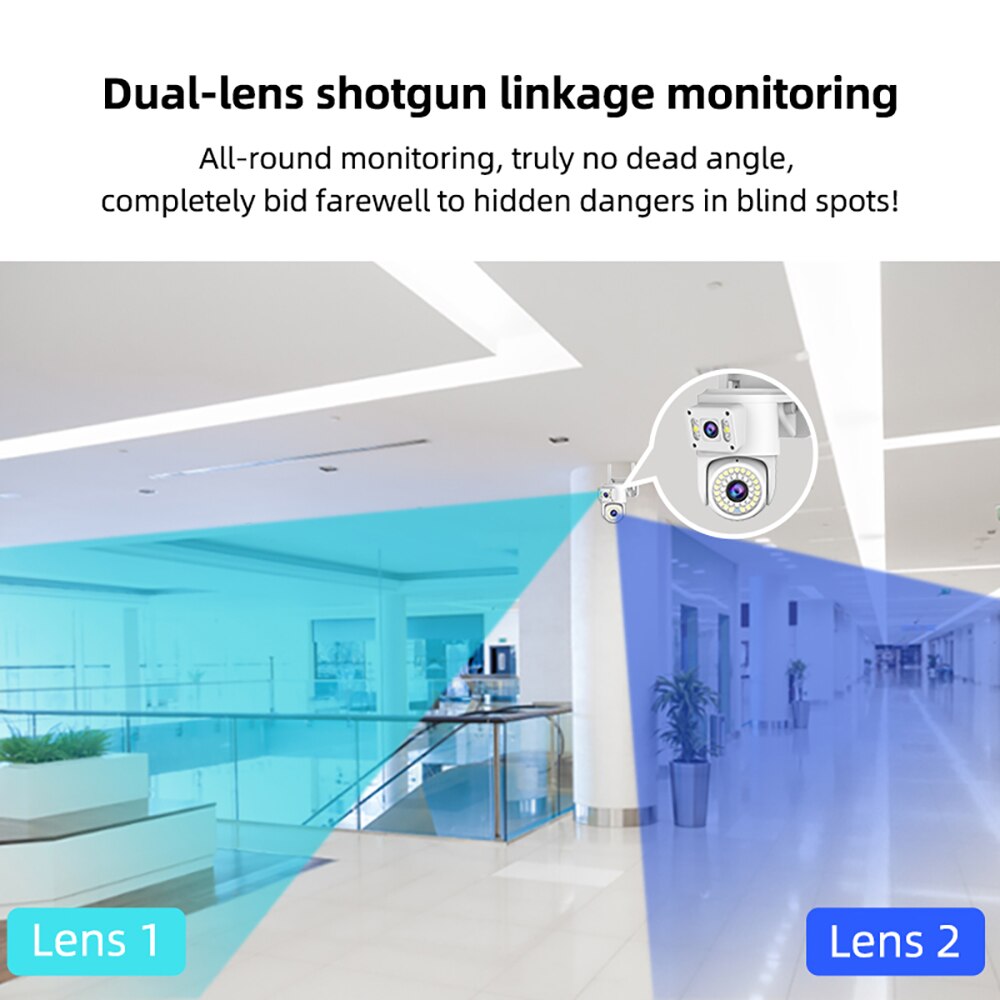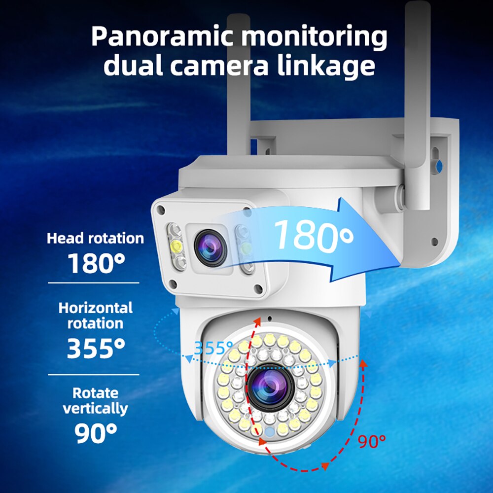 【Дистанционная Регулировка угла】 Нижняя головка линзы вращается, а верхняя линза имеет фиксированный широкий угол. Он поддерживает управление панорамированием и наклоном, двойной моторный привод и позволяет удаленно регулировать угол наблюдения. Благодаря горизонтальному повороту на 355 ° и вертикальному повороту на 90 ° он позволяет контролировать направление, устраняя слепые зоны. Вы можете регулировать угол съемки в любое время и в любом месте для всестороннего мониторинга, обеспечивая большее спокойствие.