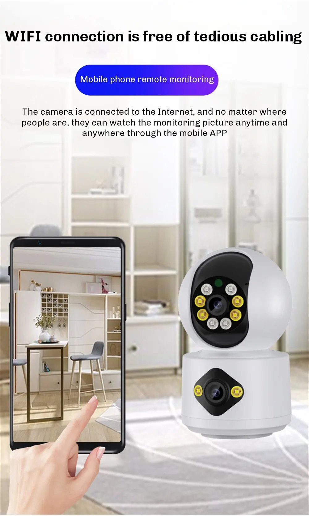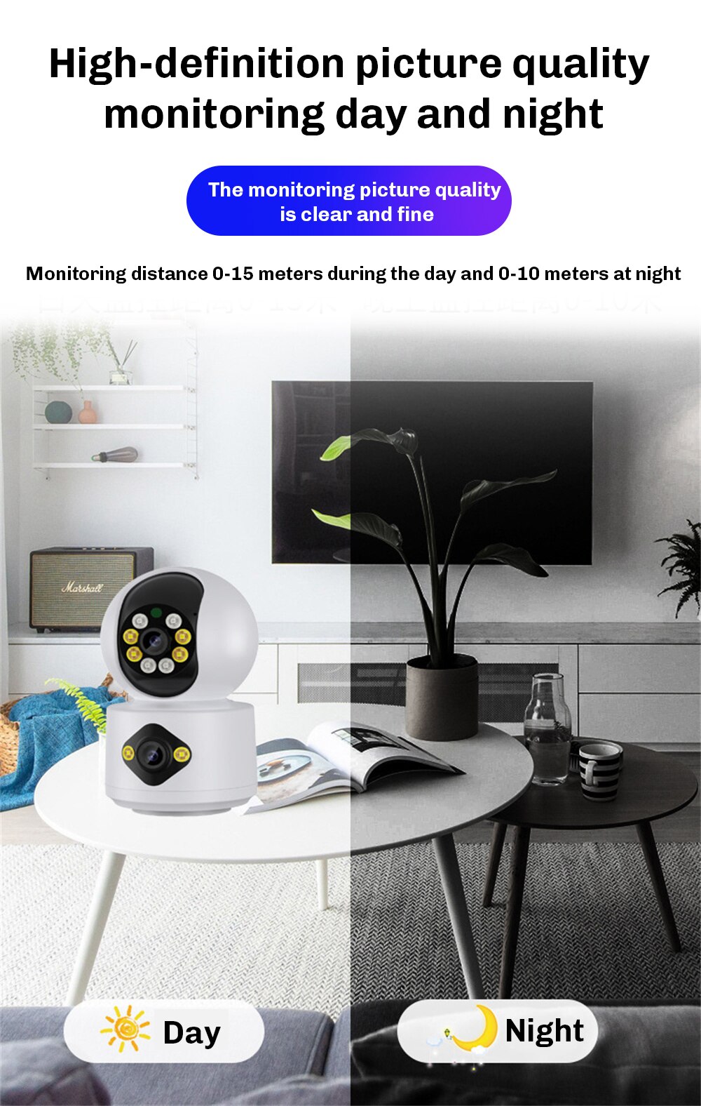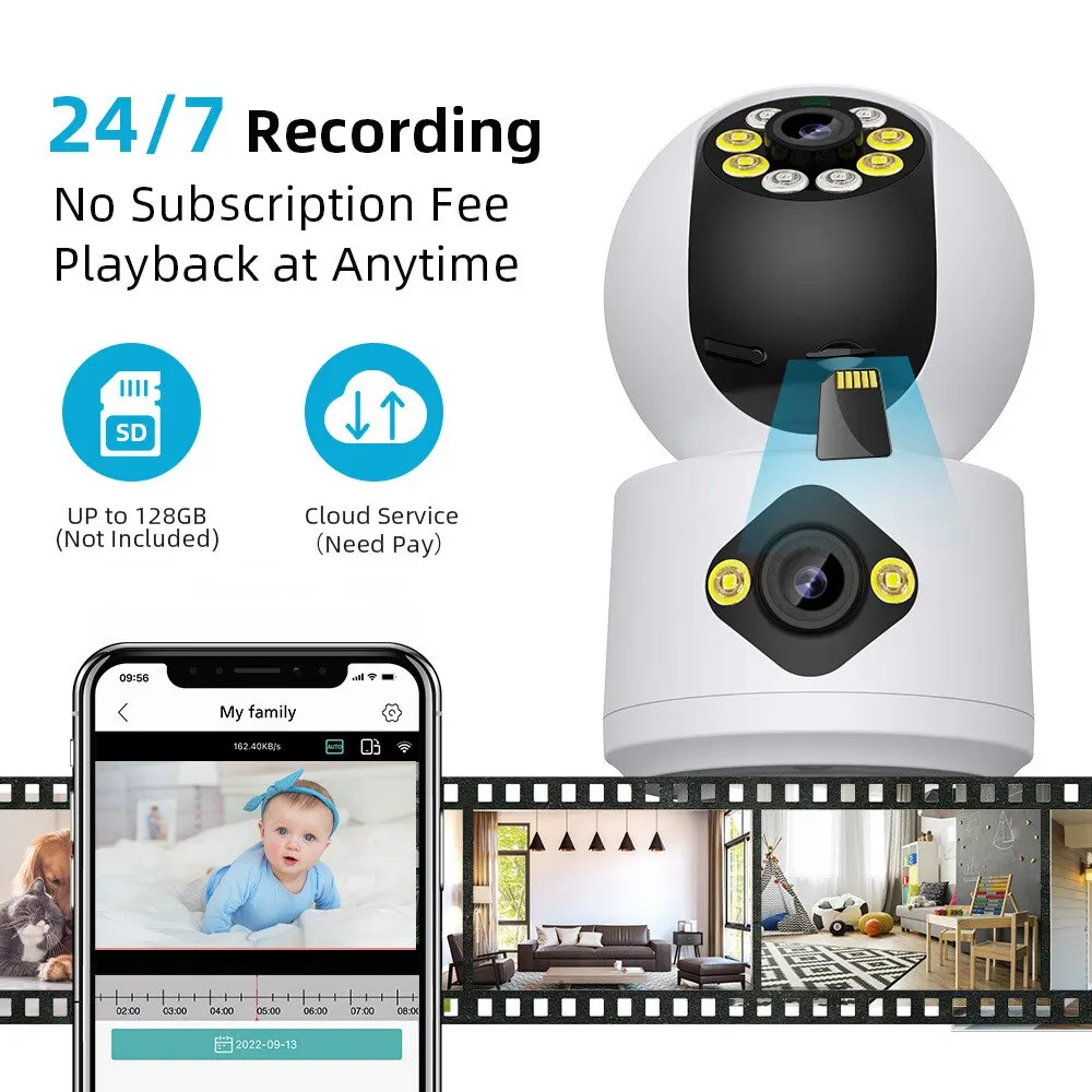 4-мегапиксельная PTZ-камера с двойным объективом, видеоняня с двойным экраном, автоматическое отслеживание, ИИ-датчик обнаружения человека, домашняя охранная система видеонаблюдения CCTV